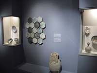 Six-lobed bowl, Bottle with impressed decoration and blue rim