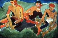 Three Figures Sitting on the Grass