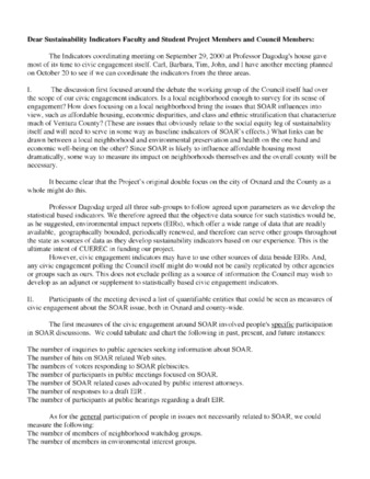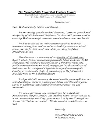 Cover Letter for "Limits to Growth and the Quality of Life in Oxnard, California"
