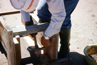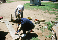 Building sluice gates for acequias to control irrigation water on Kaber farm in summer 1997