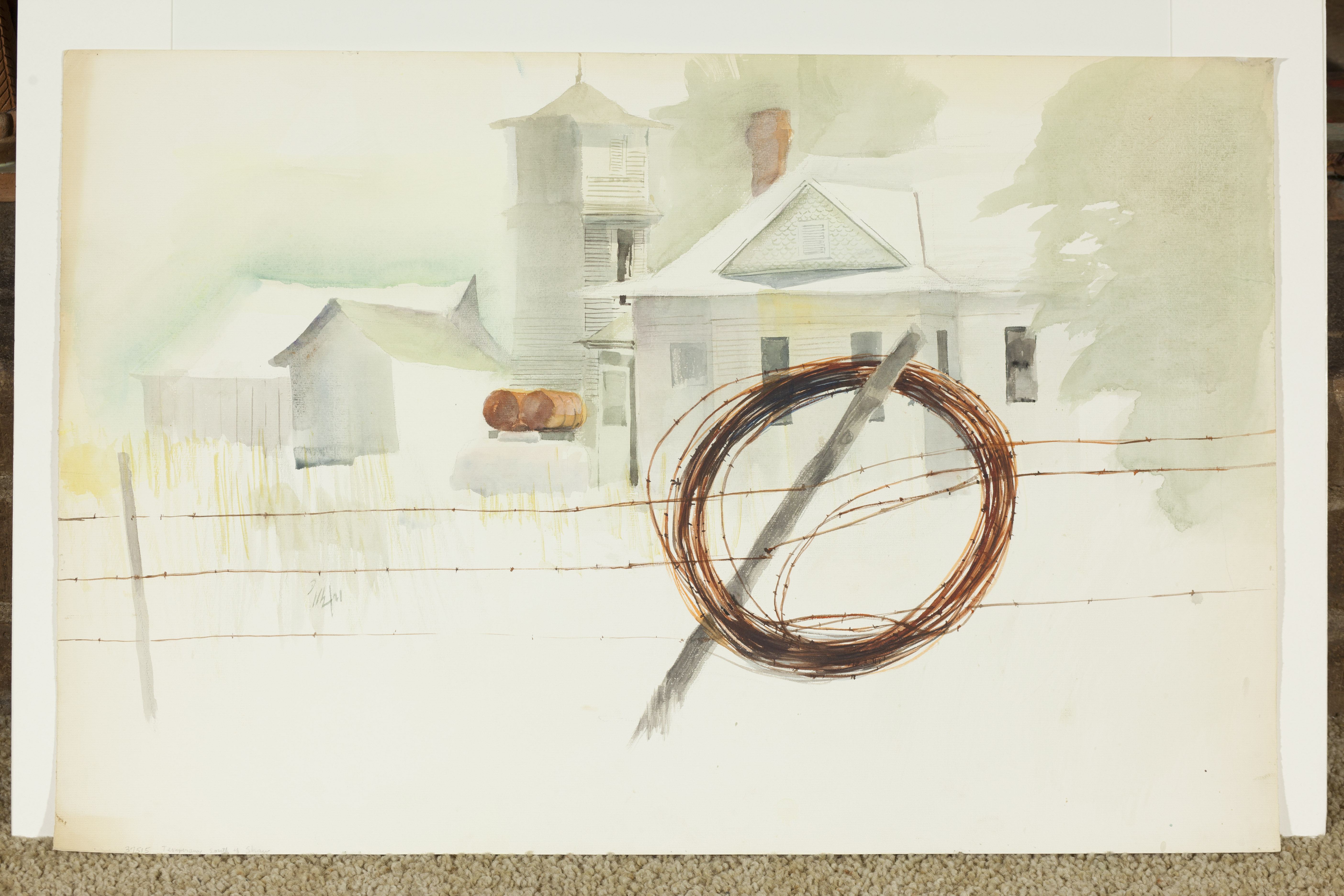 Barb Wire Coil And White Farmhouse