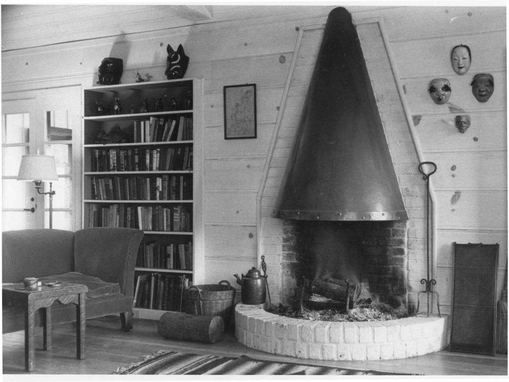 Brush Road house interior. John Steinbeck designed the copper hood of the fireplace. Also known as the Biddle Ranch house, Carol and John Steinbeck lived here from 1938-1940.