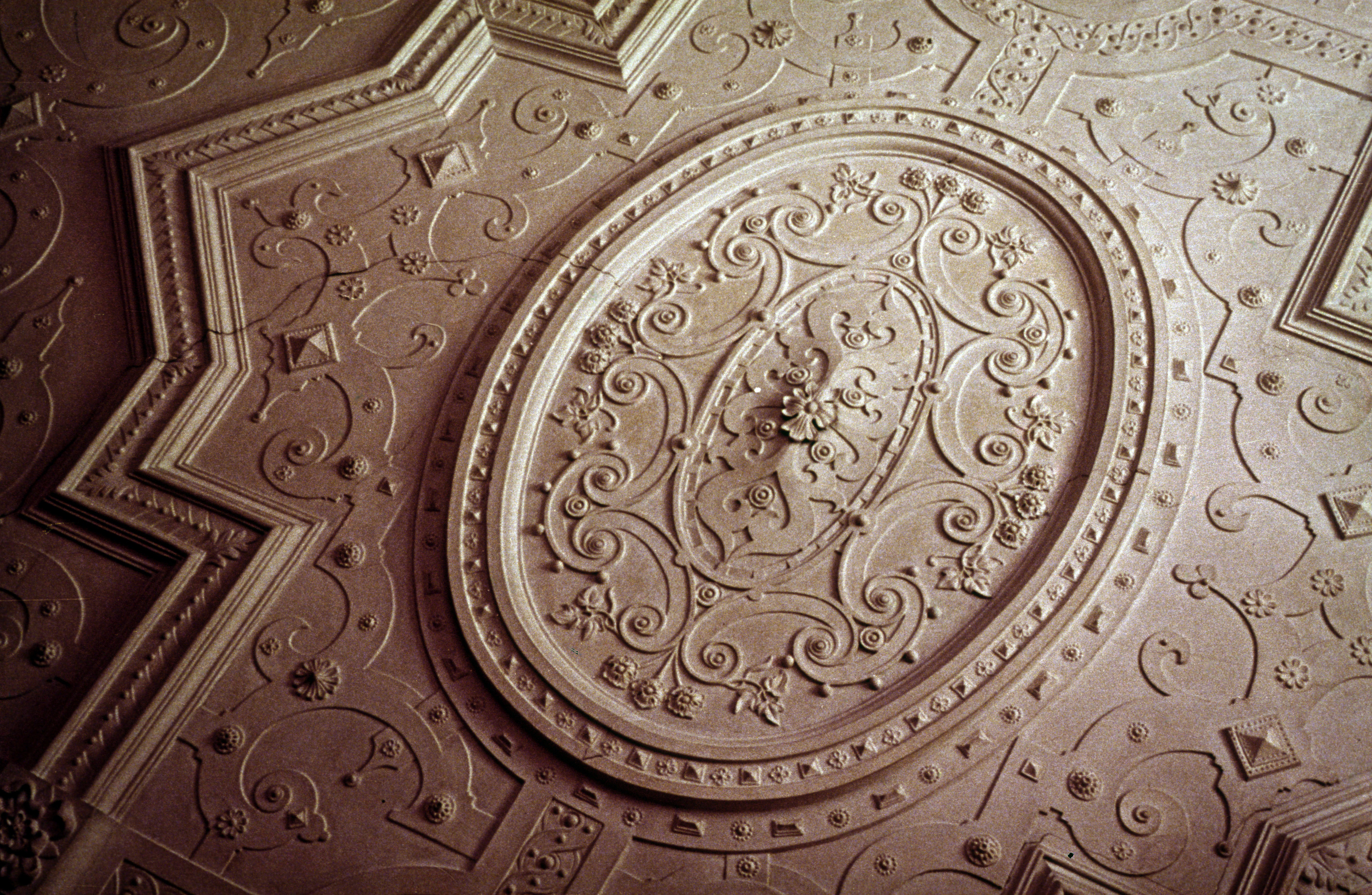 In many cases, Italian workmen were brought in to execute embellishments such as ceilings or wall paintings, carving and statuary; but the influence of Dutch pattern books continued and the curious strapwork ornament which orginated in the Germany became a popular motif.