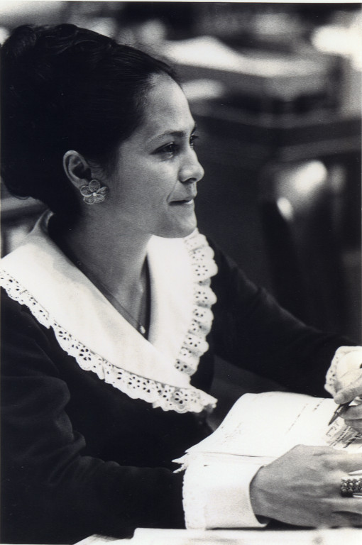 Patricia Whiting seated in the House of Representative chambers.