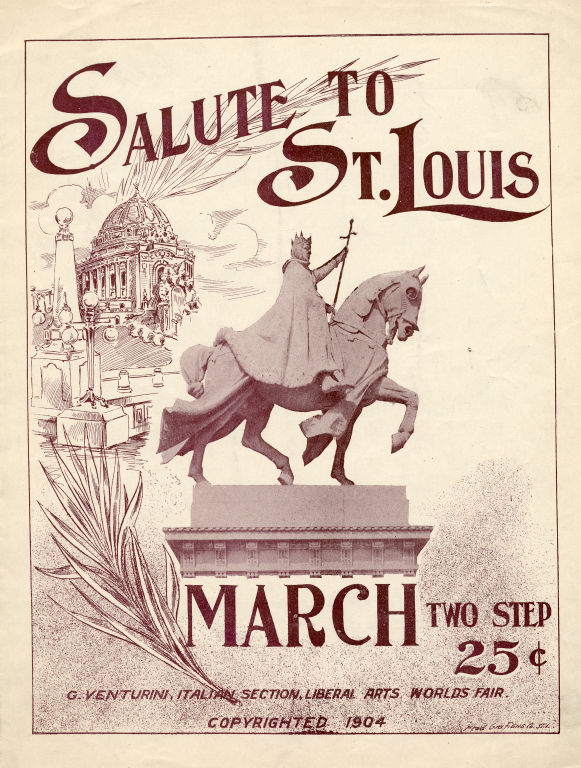 Piano score, 7 p. On cover is side view of sculpture The Apotheosis of St. Louis by Charles Neihaus.