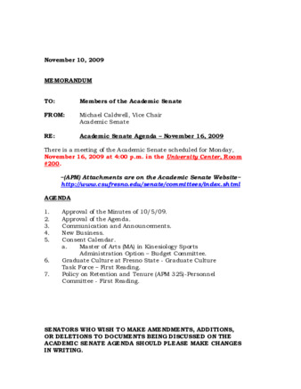Academic Senate Agenda - November 16, 2009