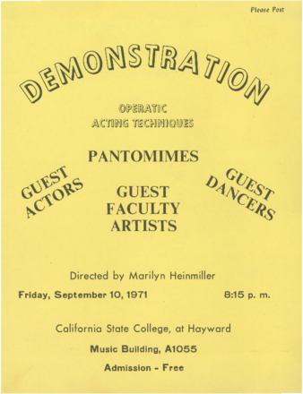 Demonstration [of] operatic acting techniques directed by Marilyn Heinmiller