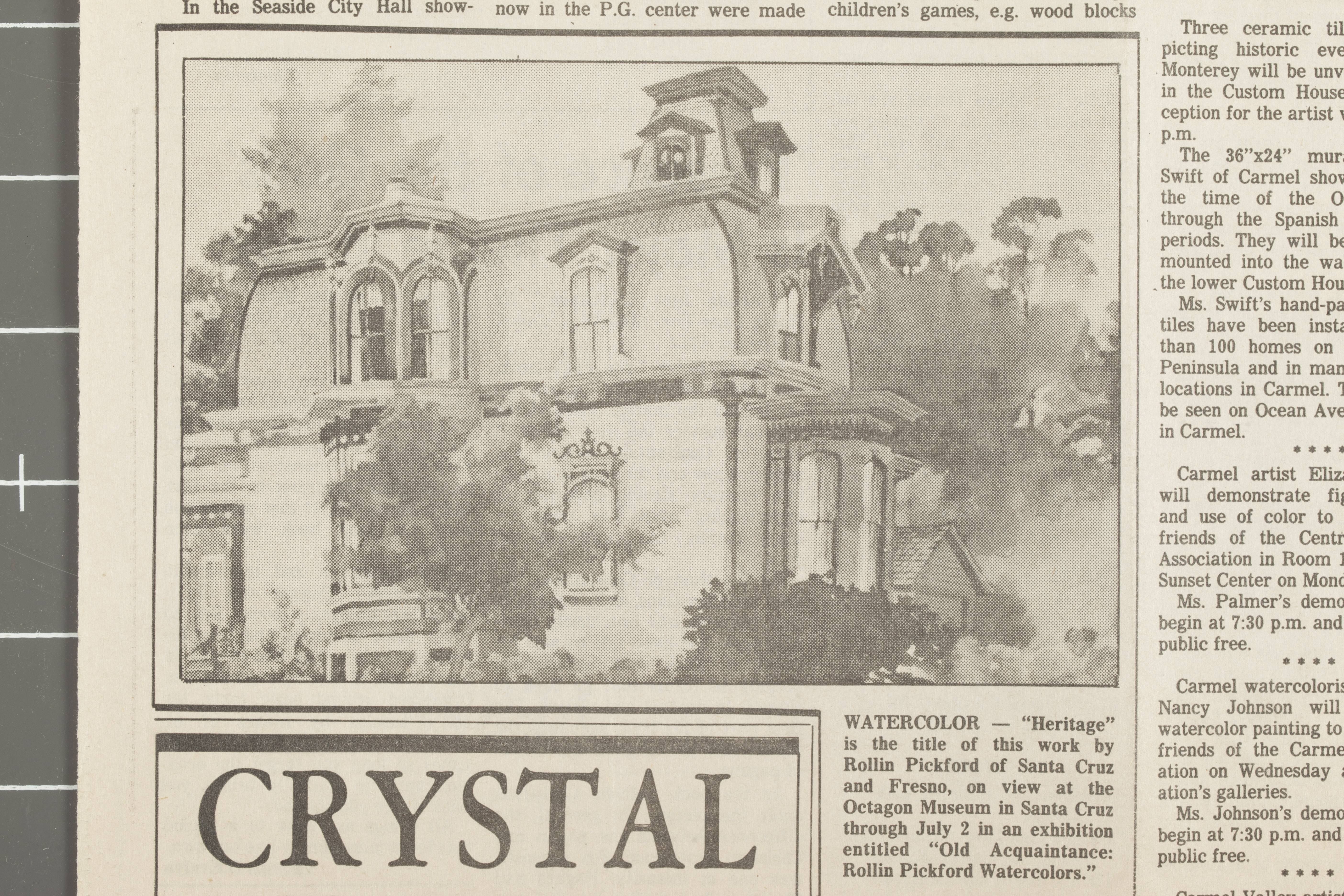 Newspaper blurb on Octagon Museum exhibtion in Santa Cruz with one watercolor