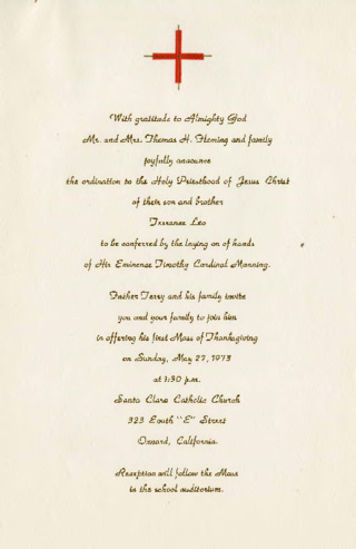 Invitation to the First Mass of Terrance Leo Heming