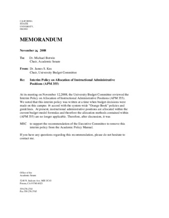 APM 355 and Memo -December 1, 2008