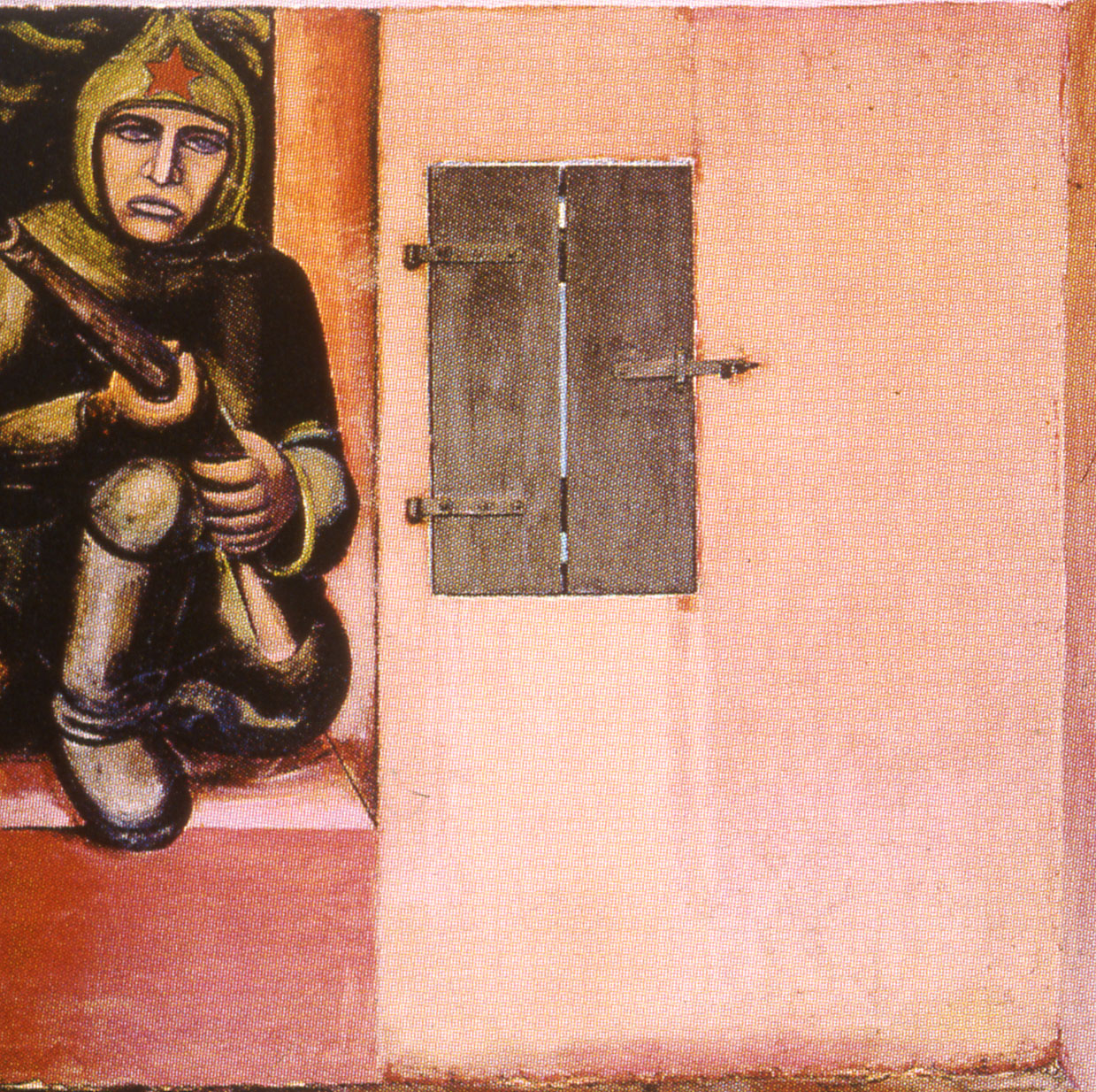 casein oil pigment on cement applied to plaster