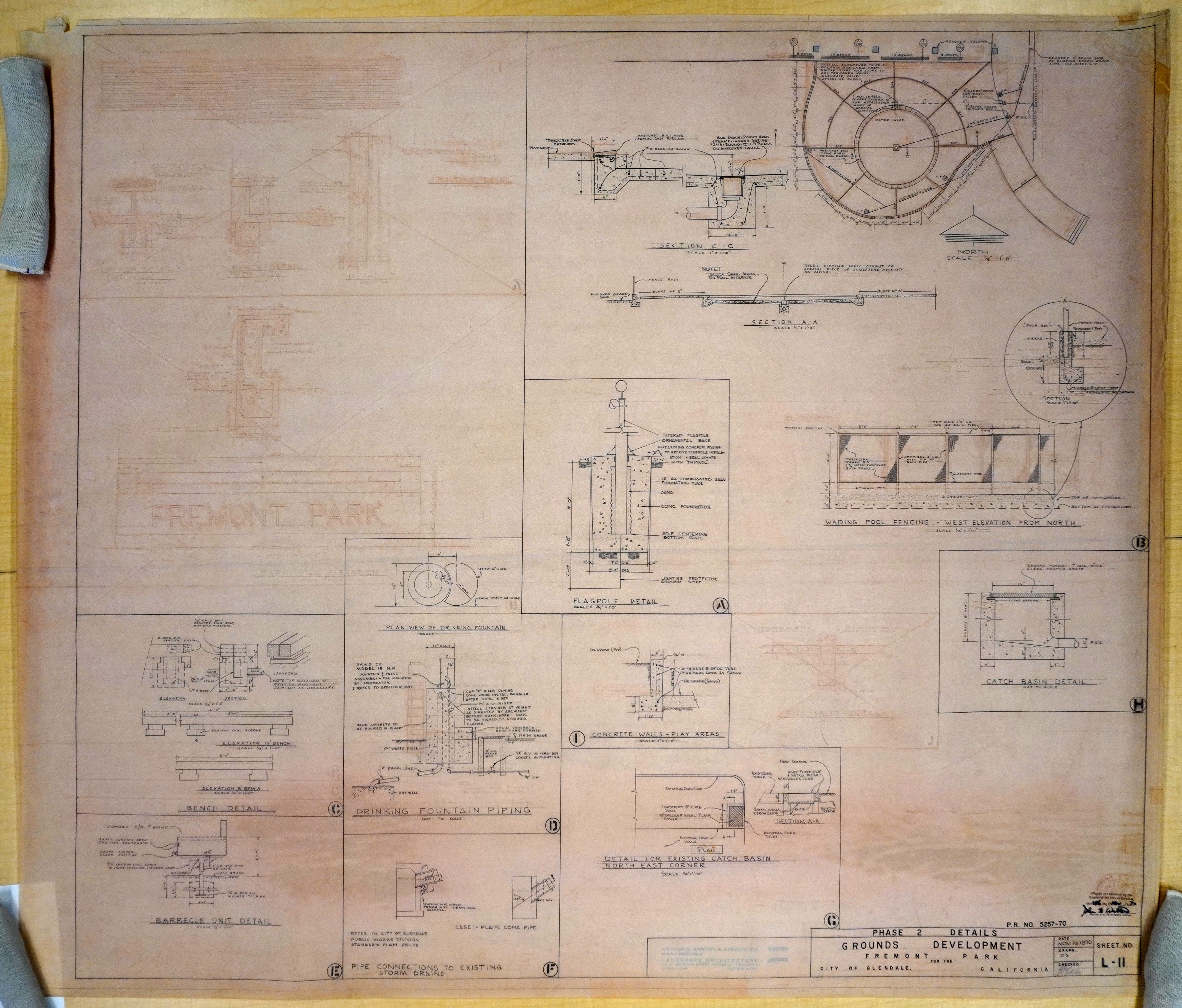 Grounds development, Fremont Park for the city of Glendale, California, phase 2, details, sheet no. L-11