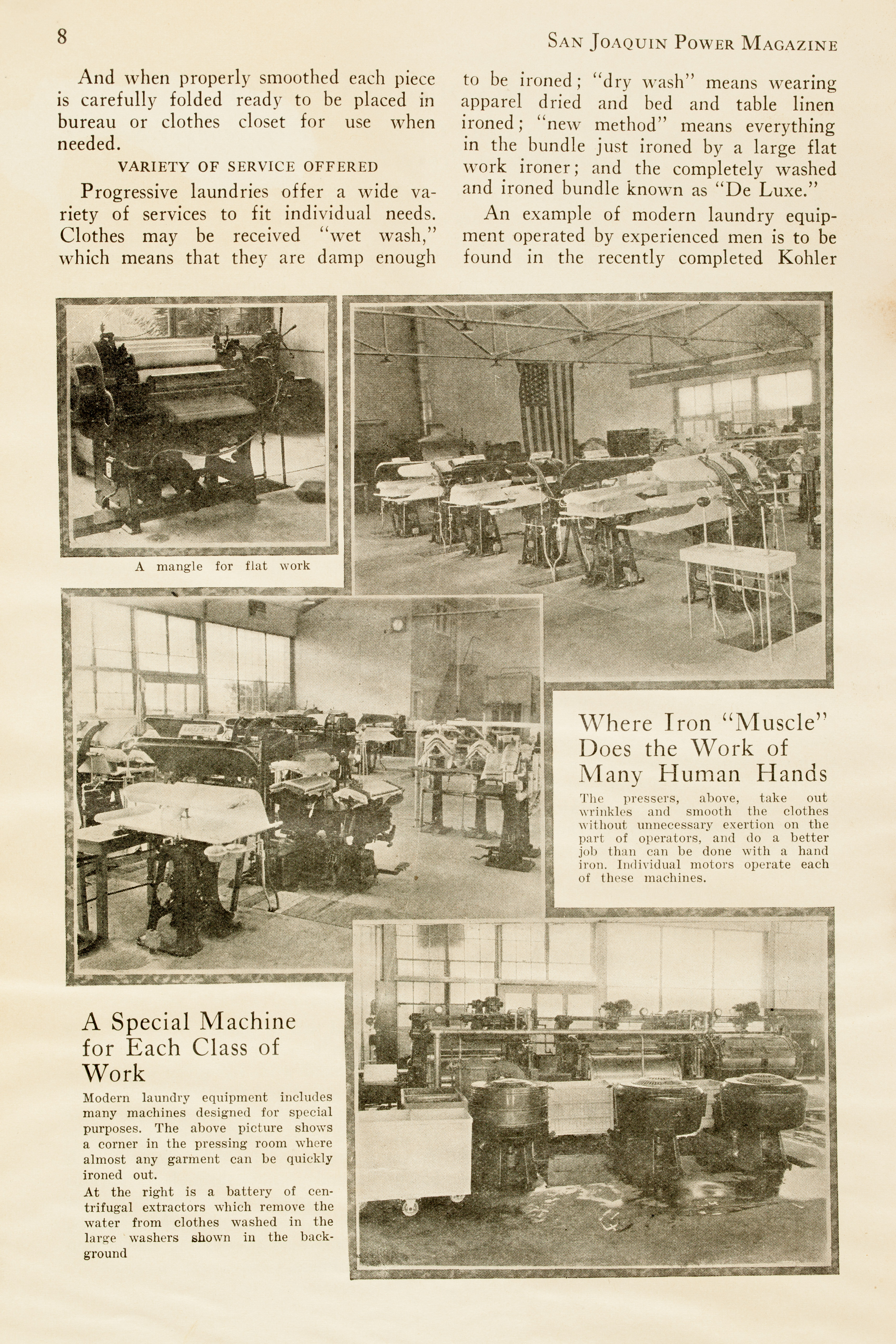 Paid promotional article touting Liberty Laundry services, March, 1929. The company boasted the latest, high-tech equipment of its time.