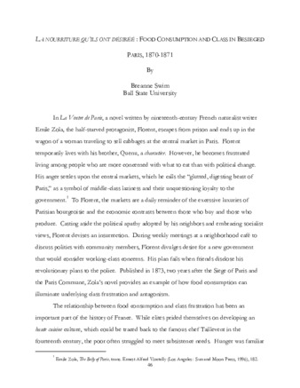La Nourriture Qu'ils Ont Desiree: Food Consumption and Class in Besieged Paris, 1870 - 1871