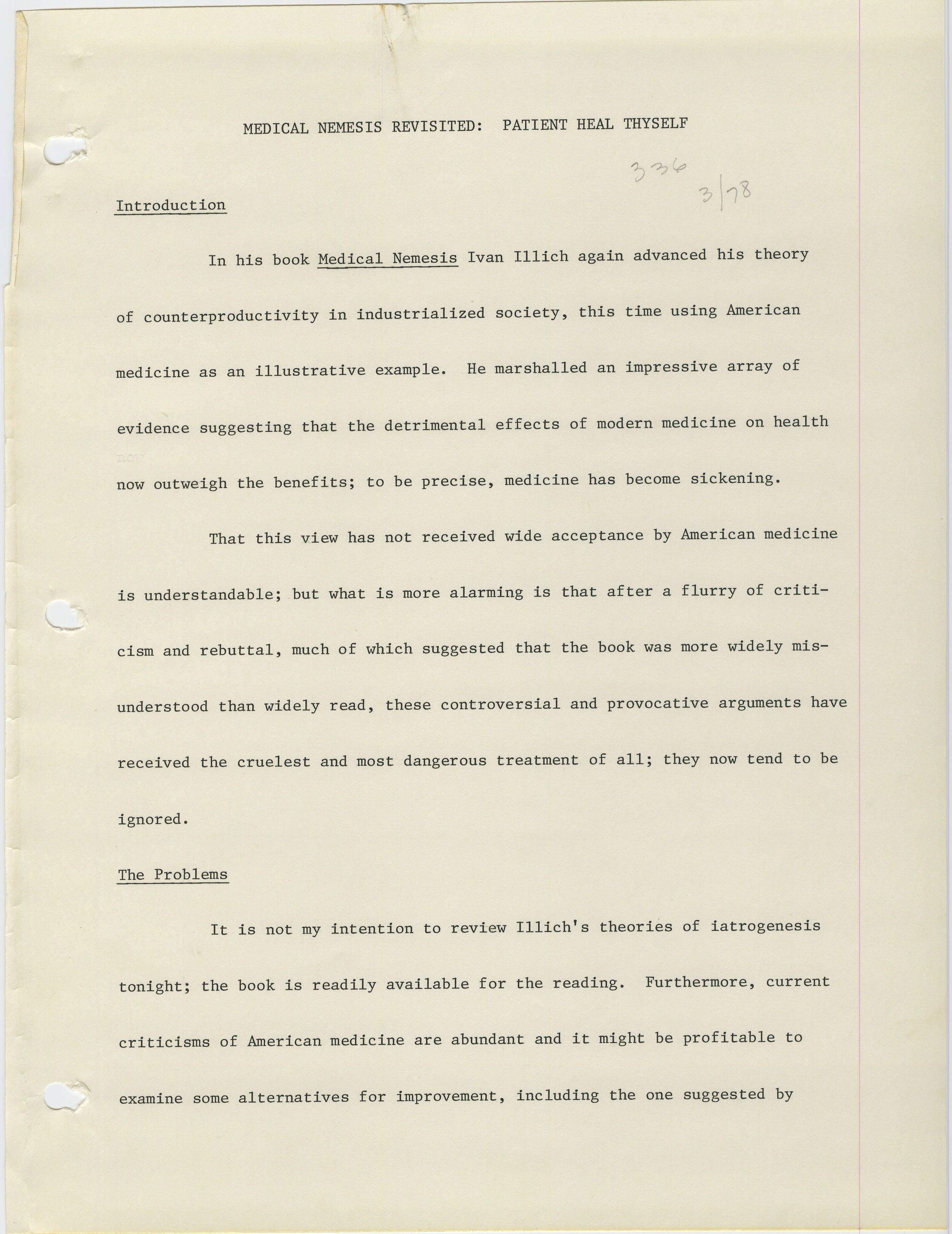 Medical Nemesis Revisited: Patient Heal Thyself
