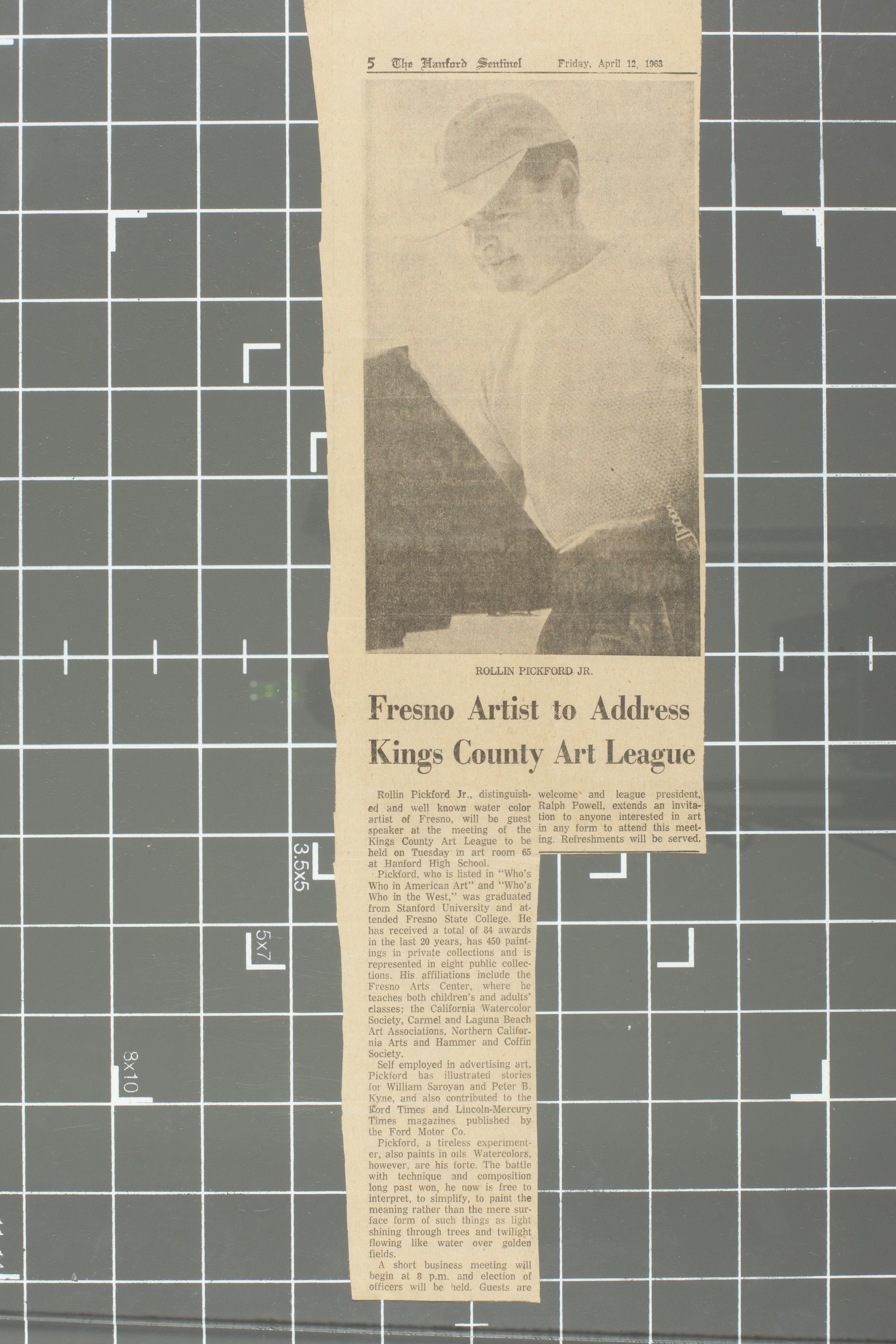 Profile of Rollin Pickford with one photo during his visit to San Luis Obispo for an exhibition.
