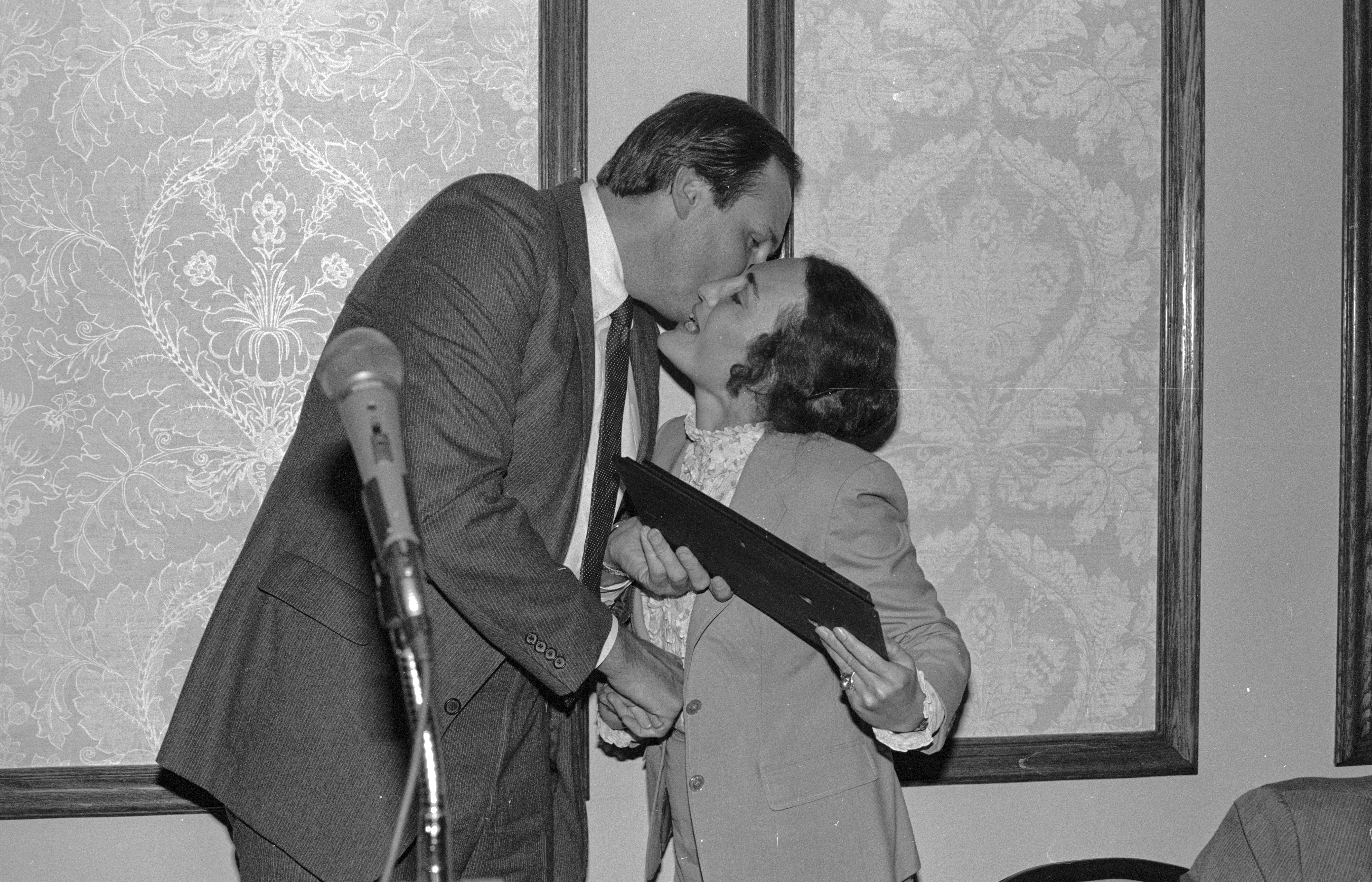 1985 Fresno County Bar Association President Donald Fischbach presenting plaque to Tomar Mason for her 3-years of service on the Fresno County Bar Association Board of Directors