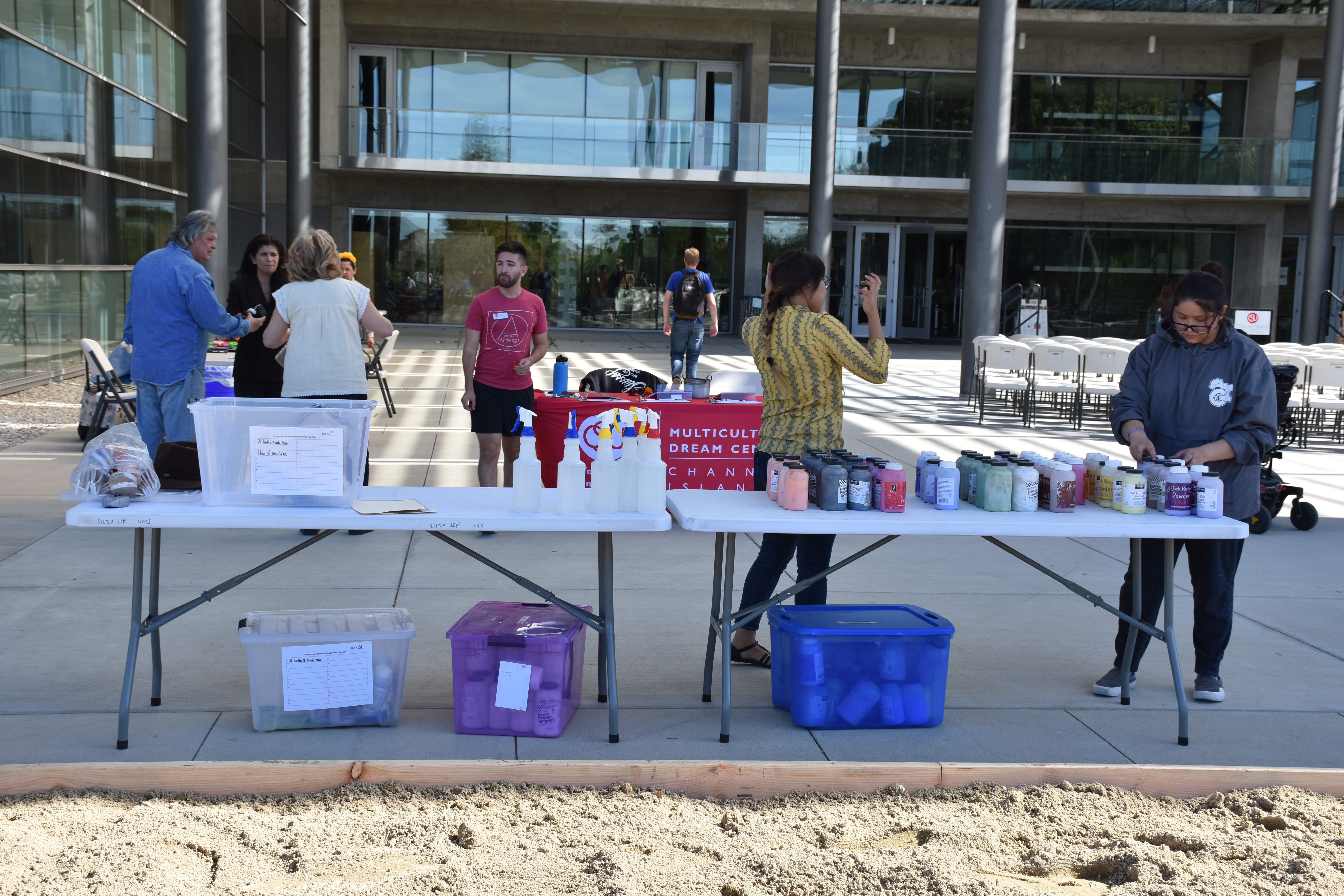 Preparation for the creation of a sand mural for the 2018 Day of the Dead celebration.