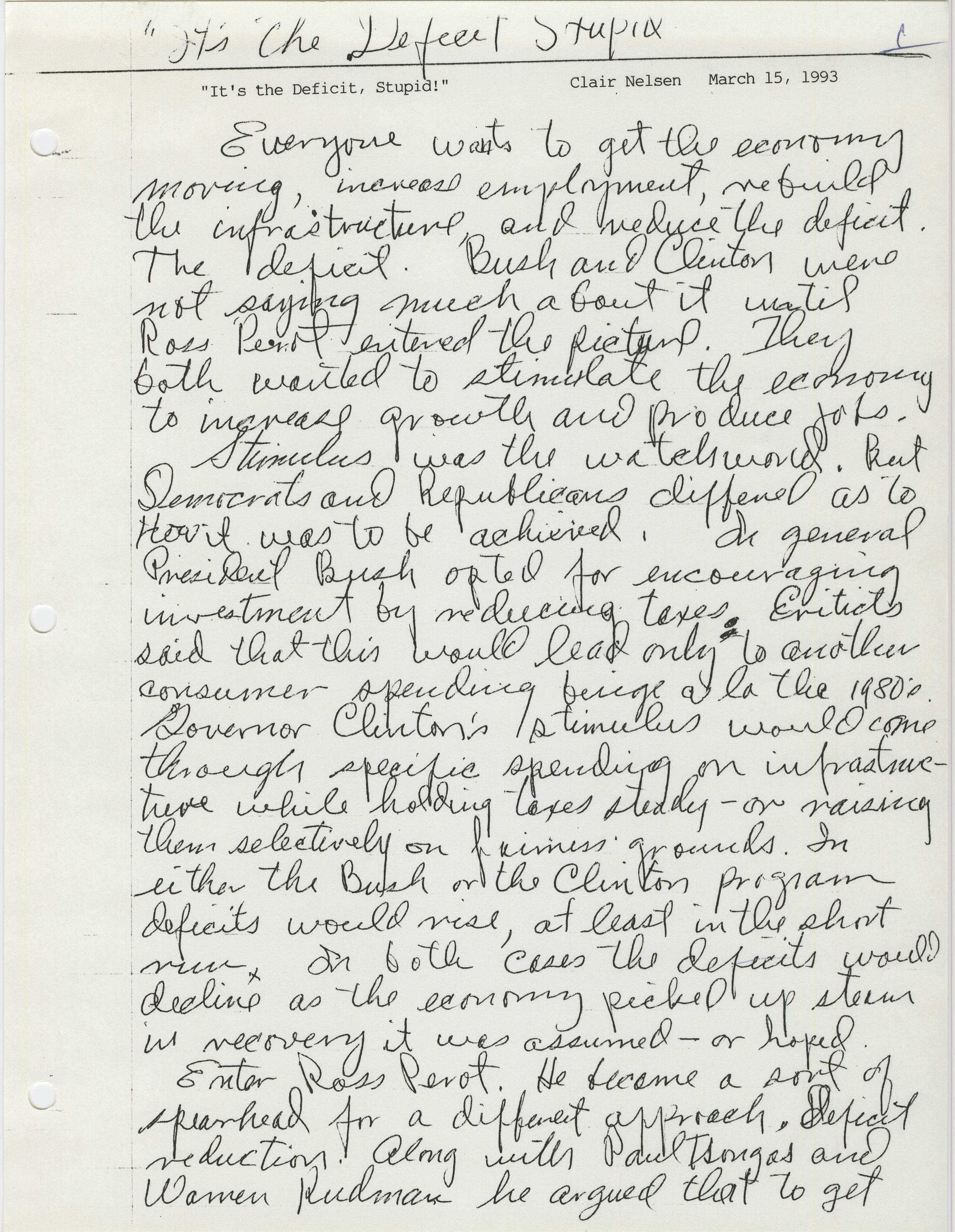 It's the Deficit Stupid