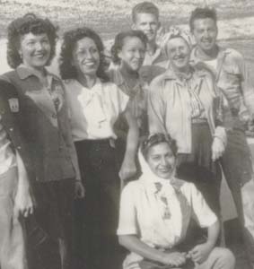 - *** File: rrrmluna4.mp3 Audio Segments and Topics: (0:00-2:51)... She learned about defense work from her high school English teacher, who mentioned that men would probably go into the service and the women into defense work after graduation. When she saw the advertisement for assembly work in the aircraft industry she decided to take the training course. After finishing the course, she went to the state employment office in Inglewood and was told they were not hiring eighteen year olds to work in the defense industry. On the bus ride home, she stopped at Douglas Aircraft and filled out an application. It was required that she pass a physical examination before she was hired. She went to Santa Monica and received a thorough physical and passed. She was hired to work the graveyard shift. (2:50-6:35)... Luna started working at Douglas Aircraft in September 1942. The first night on the job she wanted to quit because the work was difficult. She got the impression from the men that they did not want women there. The lead man did not seem convinced that women were going to succeed in this line of work. Her responsibilities involved riveting aircraft panels. Her father was happy that she was working because the family was able to discontinue welfare assistance. Other relatives and friends also applied for positions at Douglas Aircraft. Luna worked the nightshift for two and a half years and then was transferred to a base plant, where she worked for close to ten years. (6:35-8:11)... Initially, she was not required to bring her own tools to work. Over time, however, she was told that she would have to purchase a tool box and tools for the job. She was required to wear certain shoes and keep her hair up in a net. She was accustomed to wearing pants so it was not a change to wear pants at work. She usually walked to work in the evenings and the environment was safe. Often times, police officers picked her up in their squad cars and took her to work. The environment was very cooperative. However, she admits that she no longer holds the same perception of police officers. (8:11-10:47)... When she first entered the plant she describes it as a scary atmosphere because it was noisy. It was difficult to hear instructions amidst all of the noise. The building was cold because it was still under construction and parts of the plant were open to the outside. The plant consisted of long buildings that were illuminated by florescent lights. The plant was cluttered with different airplane parts on which people worked. She worked with a man who purchased candy bars for Luna and himself. She also went to a cafe with the other women in the factory after work and ultimately gained approximately twenty pounds. Luna stopped these eating habits when she learned they were affecting her weight. (10:47-14:26)... The men at Douglas Aircraft were somewhat leery of the women in the plant. There were number of middle-aged women employed at the plant. However, most of Luna's friends were in the same age range as herself. (Luna displays a photograph, mentioning that women were well groomed and looked feminine even though they were employed in defense work.) Most of her friends at the plant were Mexicans. She socialized with American girls during specific activities, such as bowling or horseback riding. Whenever she attended a Mexican dance, however, it was with her Mexican girlfriends. While living in Hawthorne she was not exposed to a lot of people or activities outside the area. Working at Douglas Aircraft expanded her horizons because she met new people and began participating in social activities in the Los Angeles area. (14:26-18:02)... The men who attended the Mexican dances were either servicemen or immigrant workers from Mexico. Her pursuit of these men was never very serious because she did not trust the Mexican immigrants and knew that servicemen could be shipped off the next day. Luna describes some of the nightclubs and dance halls she frequented. She reiterates the fact that working gave her an opportunity to make friends and experience other parts of the city. She recalls staying with two friends in Los Angeles and meeting one of their sisters who worked in the engine room for a railroad. Interacting with women outside her own family was a new and interesting experience for Luna. (18:02-20:09)... It was often difficult to schedule social activities with her friends because of their work schedules. Everyone who worked at Douglas Aircraft was required to work six days a week and each person had a different day off from work. When she started at the plant it was not unionized. The employees did not receive any vacation time or scheduled breaks. However, whenever someone wanted to take a coffee break they did so at their leisure. The employees were not closely supervised and they enjoyed a substantial amount of freedom in the work place. Each worker was provided with a workload schedule that required people to complete a certain amount of work. If these schedules were fulfilled, plant supervisors did not bother the workers. (20:09-23:48)... She arrived at work early so that she could visit with co-workers in the cafeteria. While working, it was customary for people to talk to each other and socialize. Her lunch break lasted for thirty minutes. She started drinking coffee during this time because it was difficult for her to stay awake. She also tried smoking to appear more sophisticated; however, she quit after a short time because it made her dizzy. Her shift ended at 7:00 a.m. and she slept from approximately 9:00 a.m. until 2:00 p.m., when she got up and completed her household chores. She was responsible for the majority of the chores, but her father and brother helped cook for the family. She went back to bed at 8 p.m. and then got up to go to work at 11 p.m. (23:48-26:25)... It took several weeks to adjust to her job at Douglas Aircraft. She worried that she would be fired because of her performance. Initiall