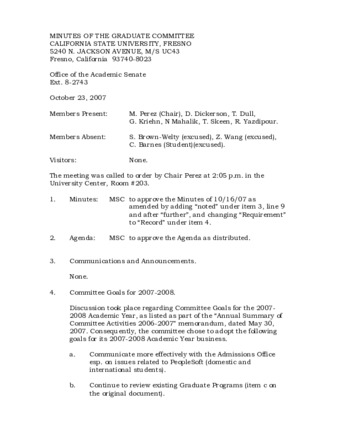 Minutes of the Graduate Committee 10/23/2007