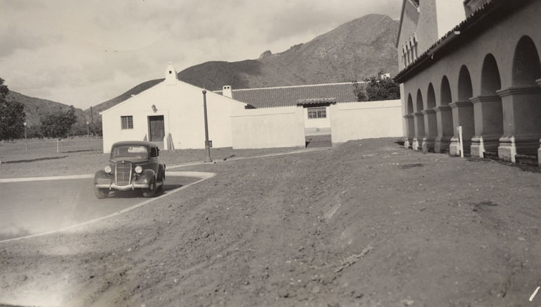 Bell Tower Bldg,. Front Veranda (before landscaping)Camarillo State Hospital (1936-1997)