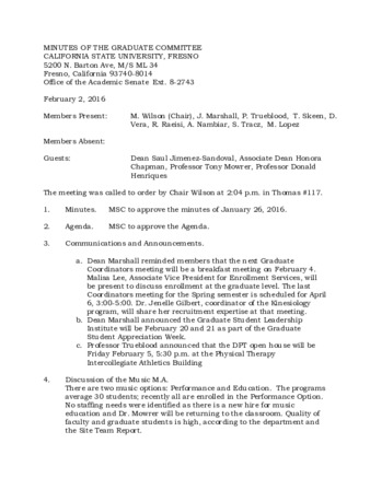 Minutes of the Graduate Committee 02/02/2016