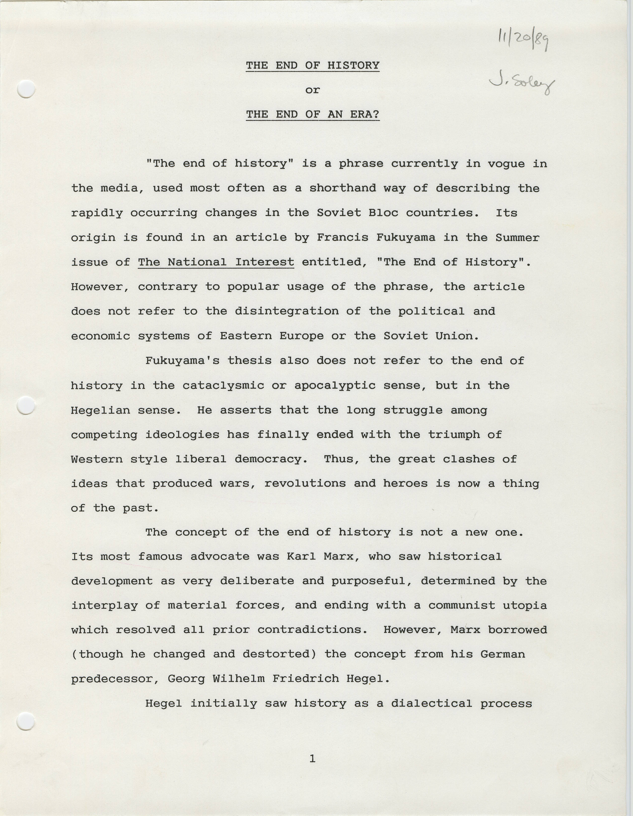 The End of History or the End of an Era?
