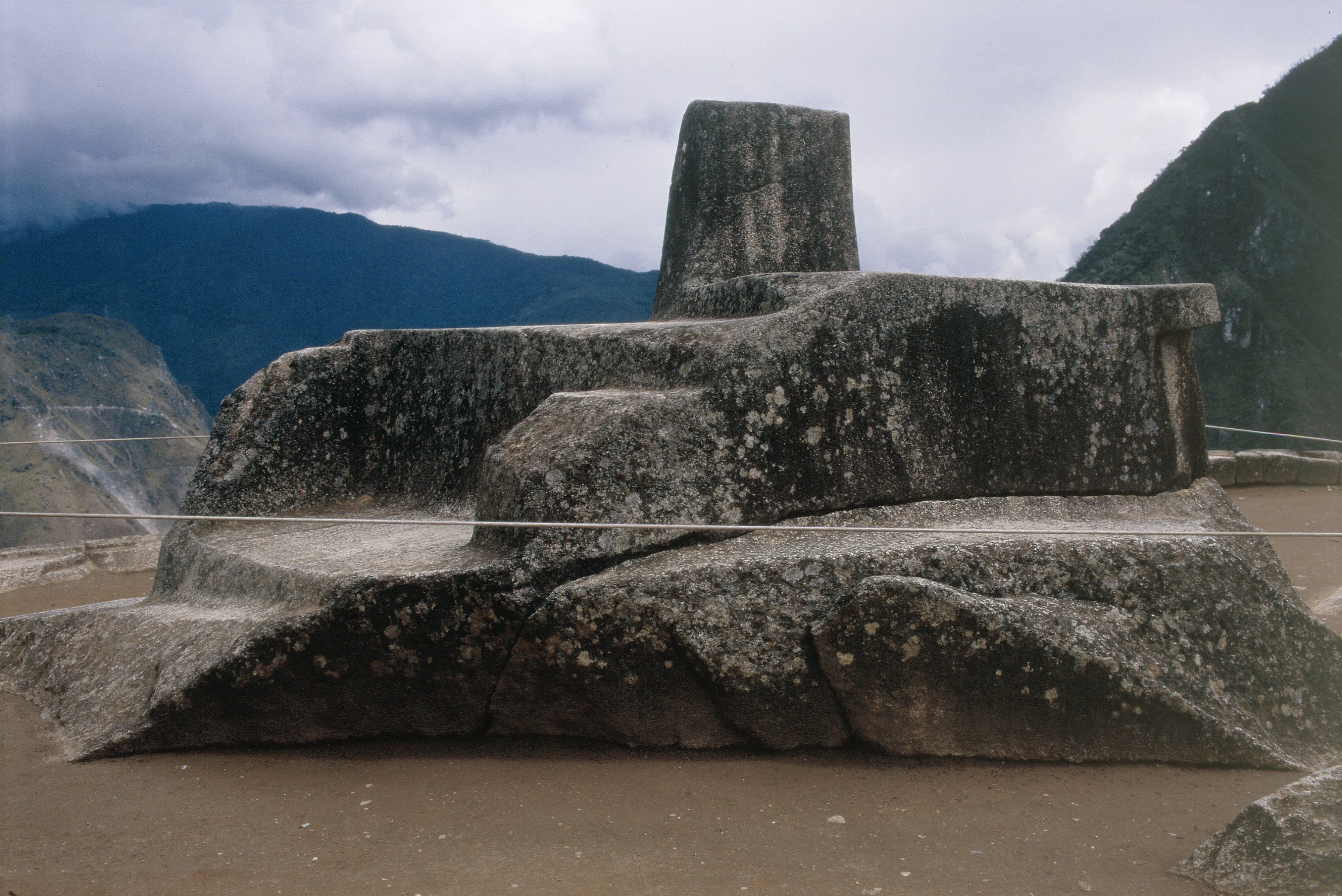 Conjunto V: Intiwatana. Intiwatana stone, view NW. Imperial Benedictine Abbey of Sts. Stephen and Vitus. founded by Benedictine monks from abbey of Corvey on the Somme, France. This developed in 9th & 10th c. as a very important cultural center in Northern Europe. UNESCO nominee
