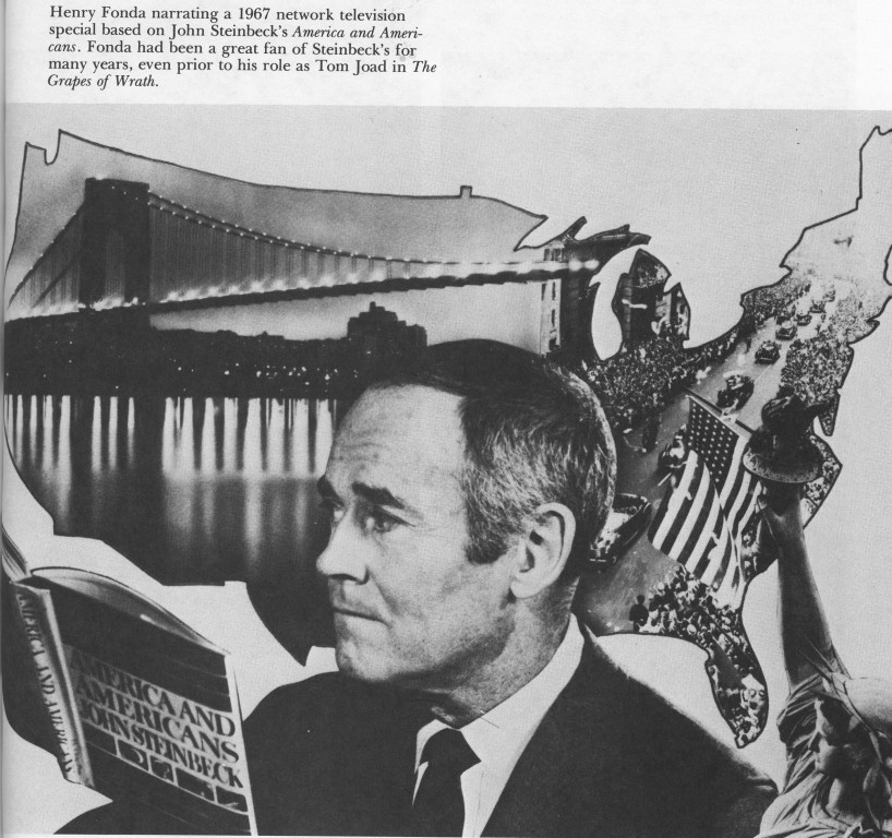 America and Americans publicity still. Henry Fonda with collage around him.