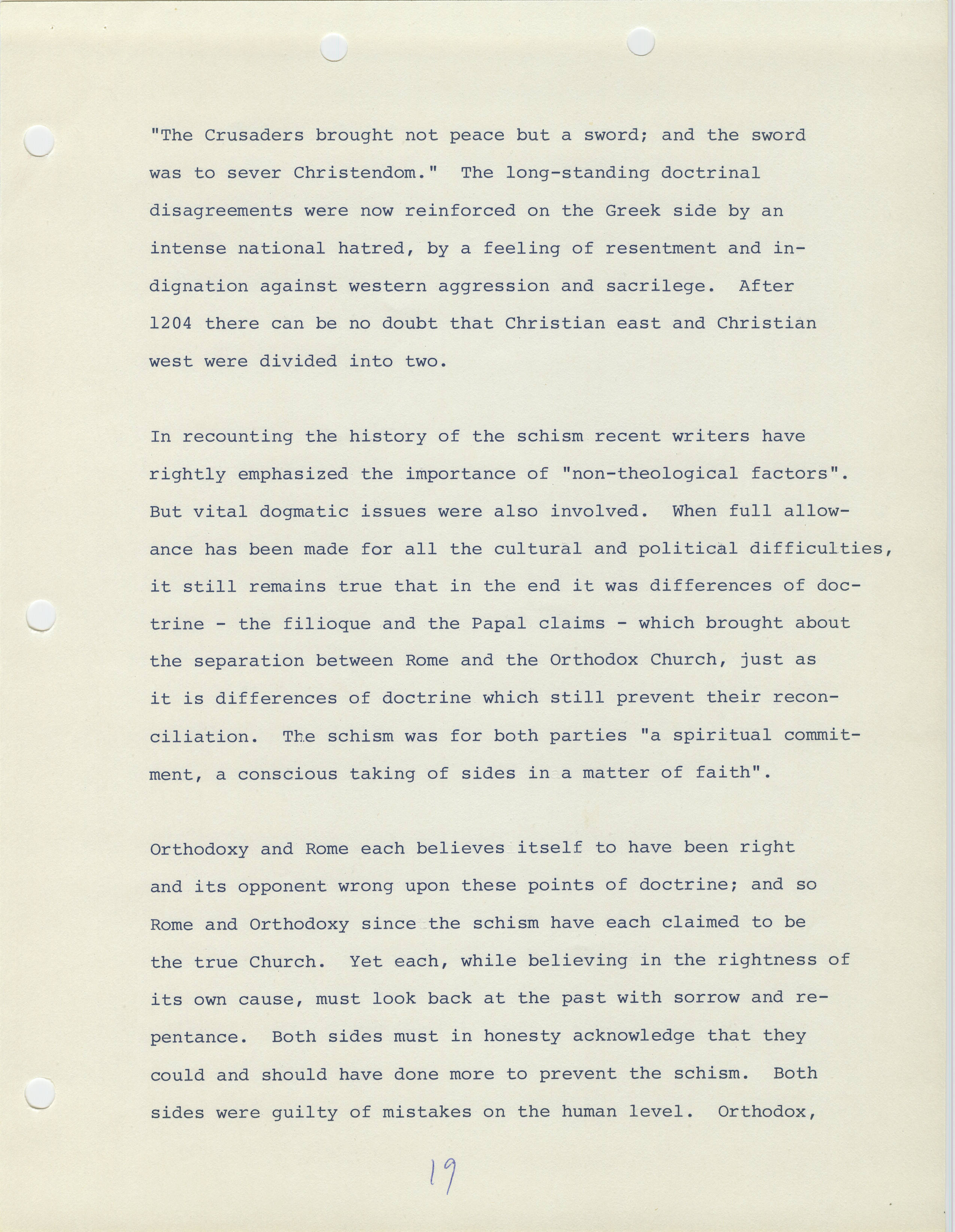 Orthodox-Roman Catholic Schism 1054 A.D. and Steps at Reconciliation-An Orthodox Perspective