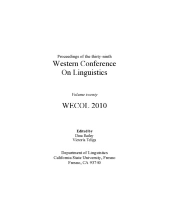 Proceedings of the Western Conference on Linguistics, Vol.20, WECOL 2010
