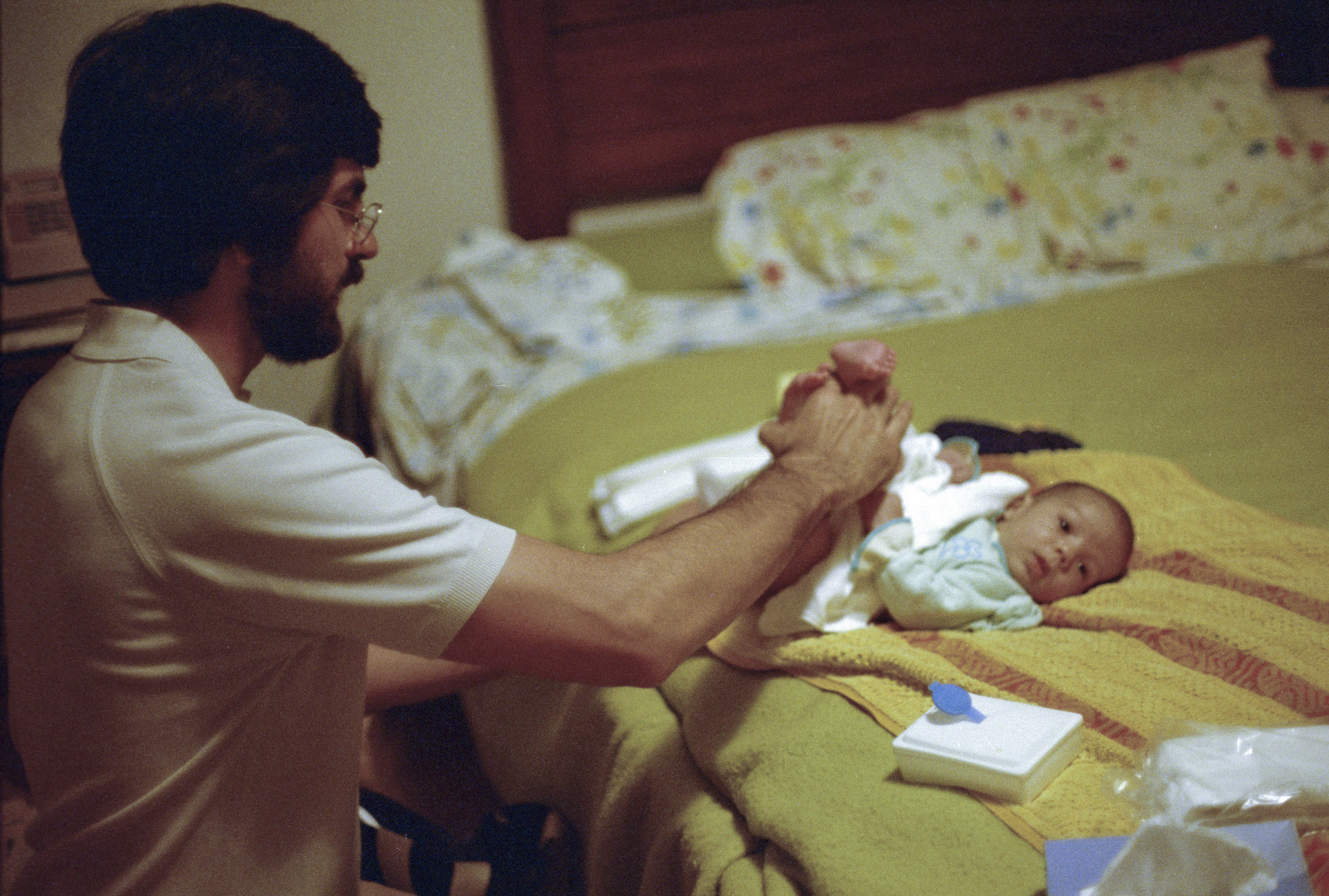 William Leifer changing Gregory Leifer's diaper