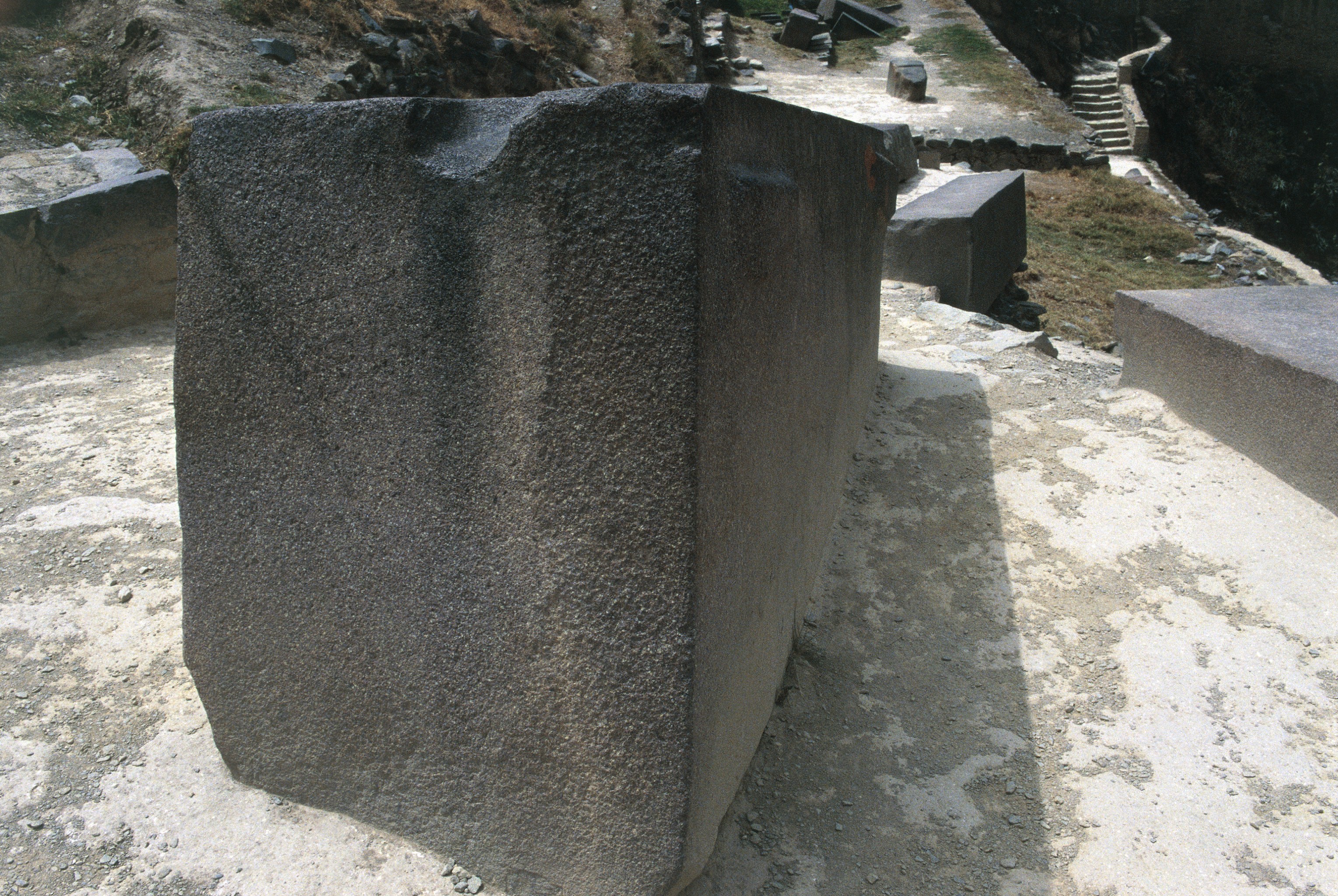 at the level of the Temple of the Sun: loose block destined for the Temple of the Sun, with carved indentation at the end