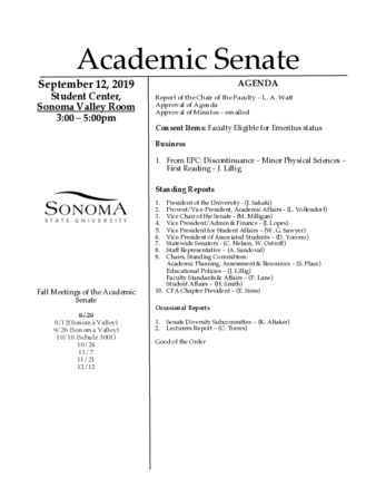 Academic Senate Agenda 2019-09-12