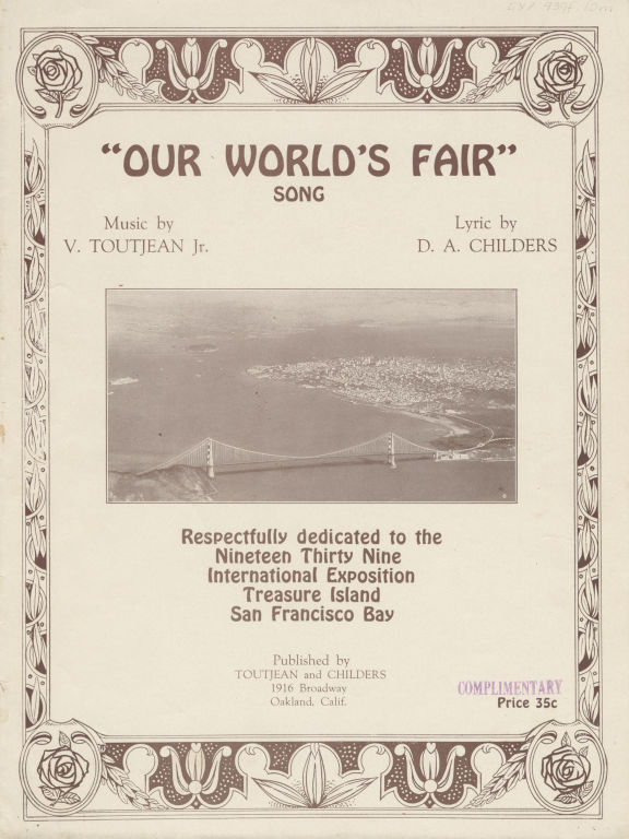 Piano and vocal score, 5 p. On cover: Respectfully dedicated to the Nineteen Thirty Nine [sic] International Exposition, Treasure Island, San Francisco Bay.