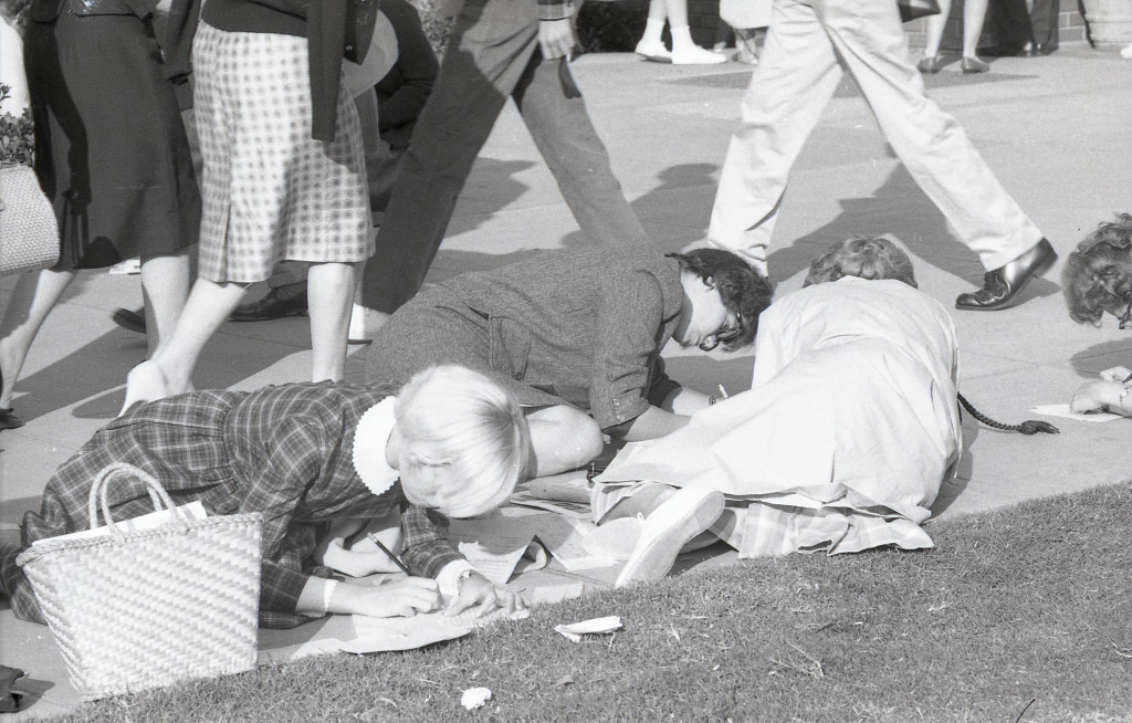 Female students fill out paperwork