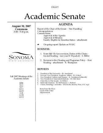 Academic Senate Agenda 2007-08-30
