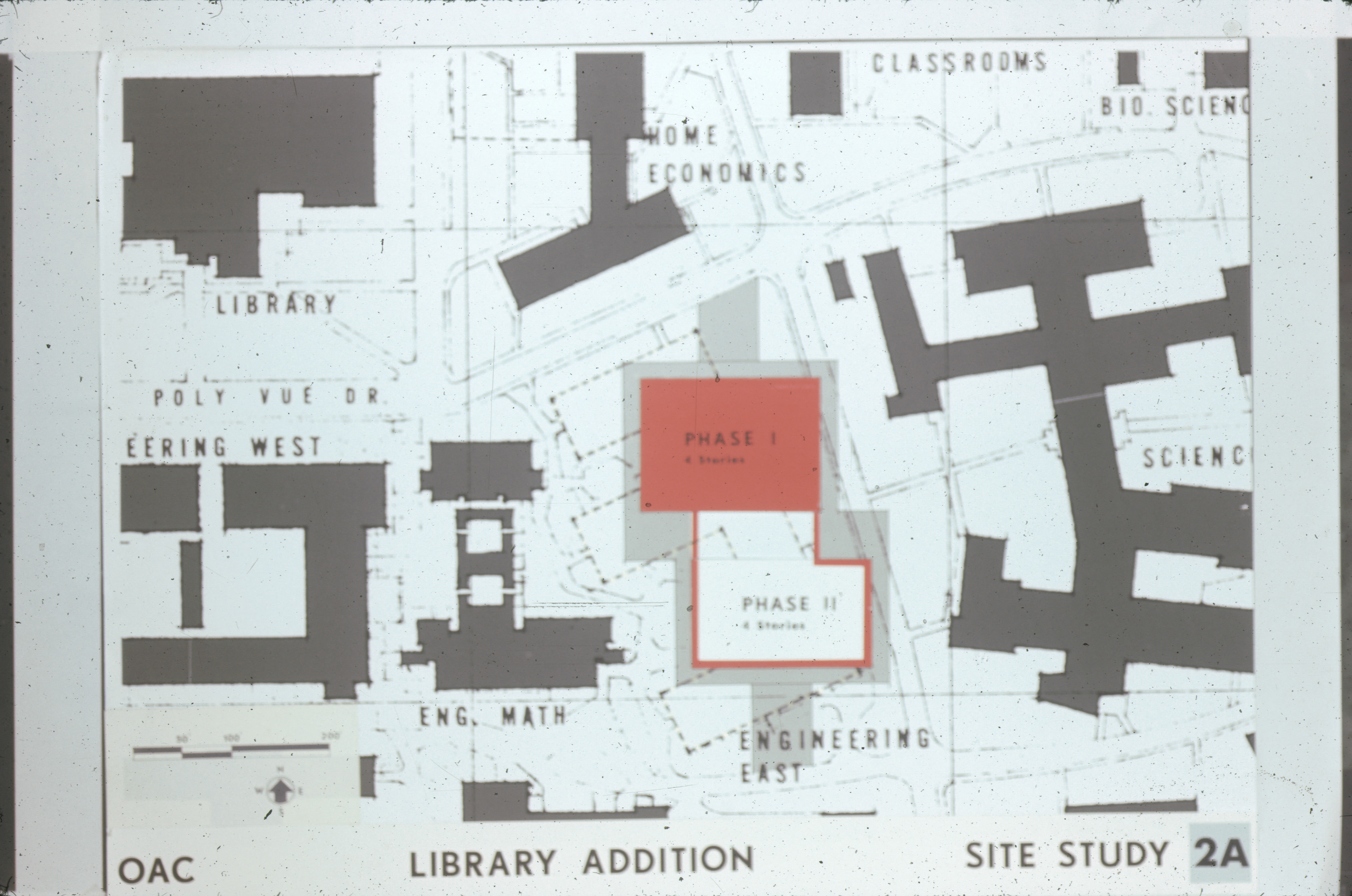 An addition to the site studies conducted to propose a potential addition the library on Cal Poly's campus. This site study is titled "Site Study 2A" and features two phases within the potential addition on the greater Cal Poly campus.