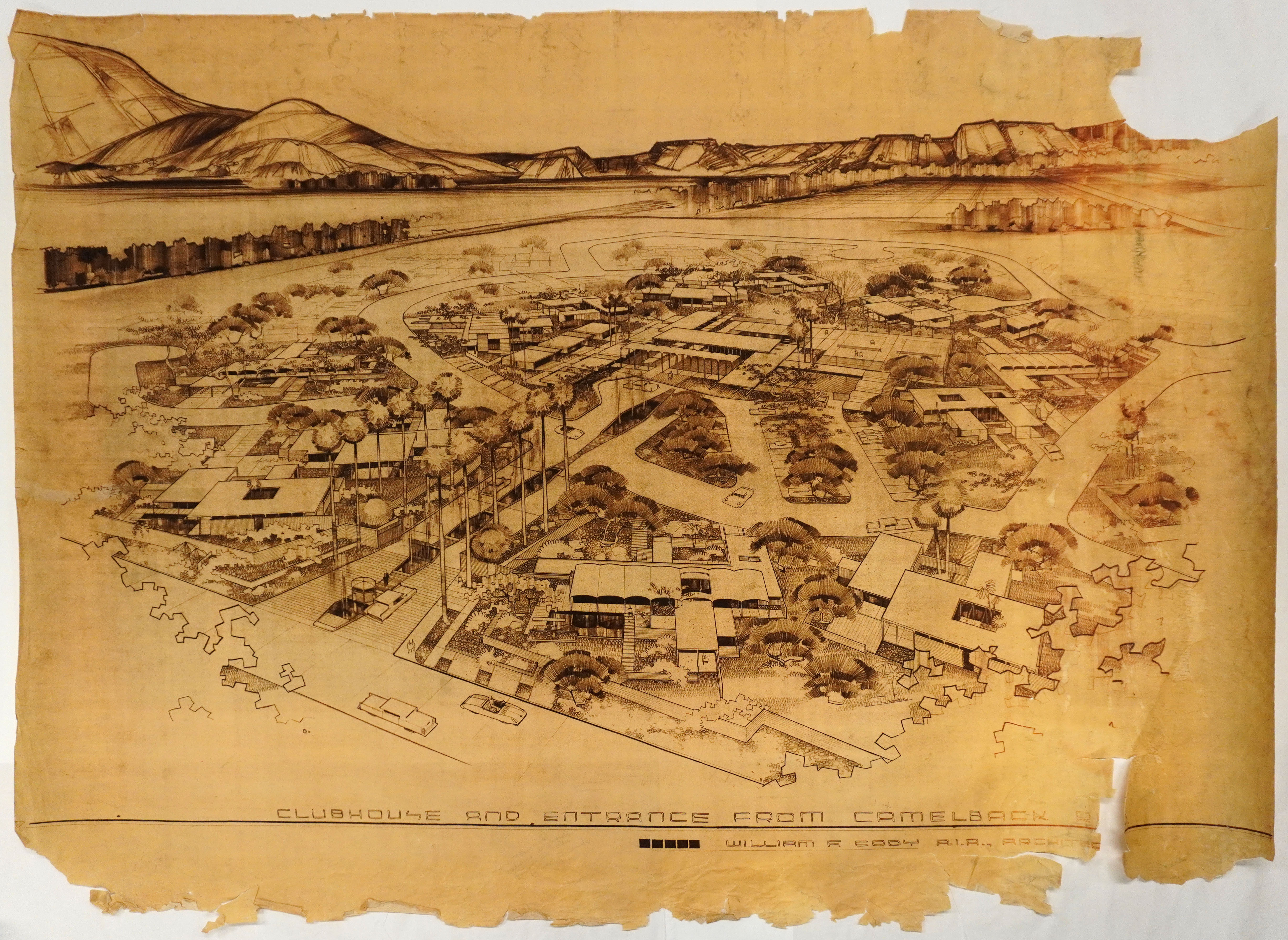 Fountain Hill, clubhouse and entrance from Camelback [perspective drawing]
