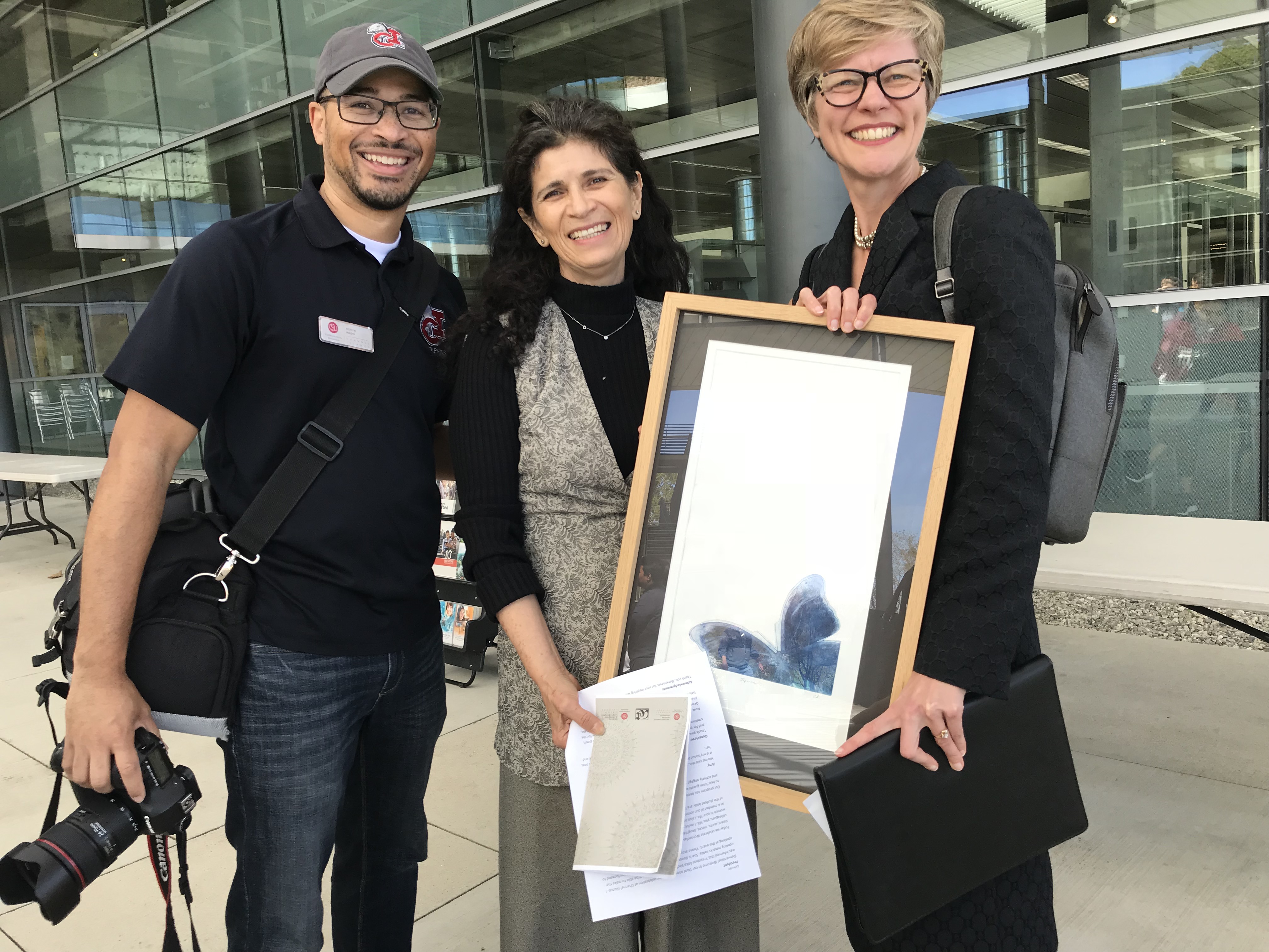 Kevin Mapp, Dr. Margarita Lopez-Lopez, and Dr. Genevieve Evans-Taylor at the Celebrating La Mujer event hosted at the John Spoor Broome Library.