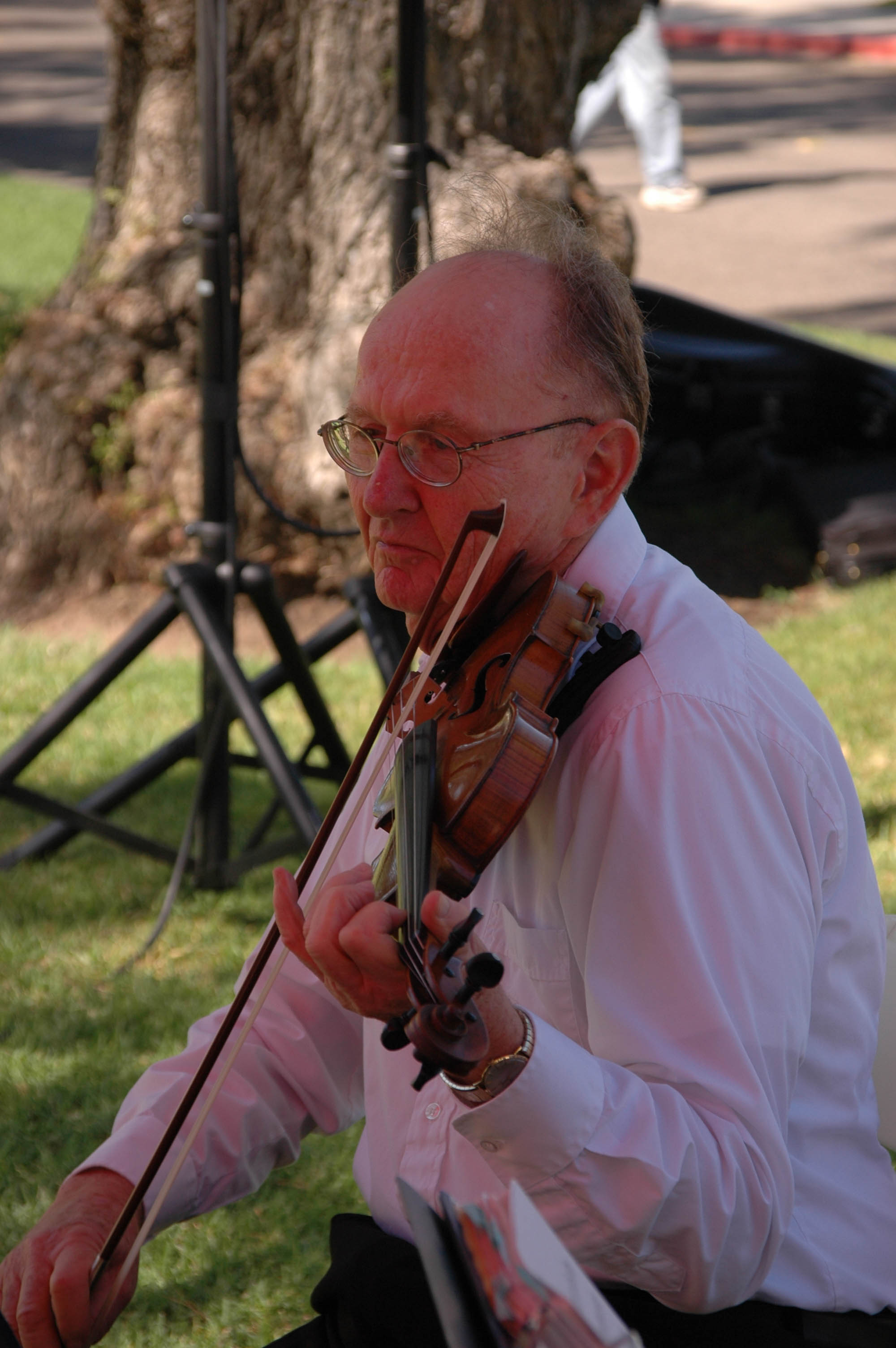 Member of string quartet at Broome Library groundbreaking