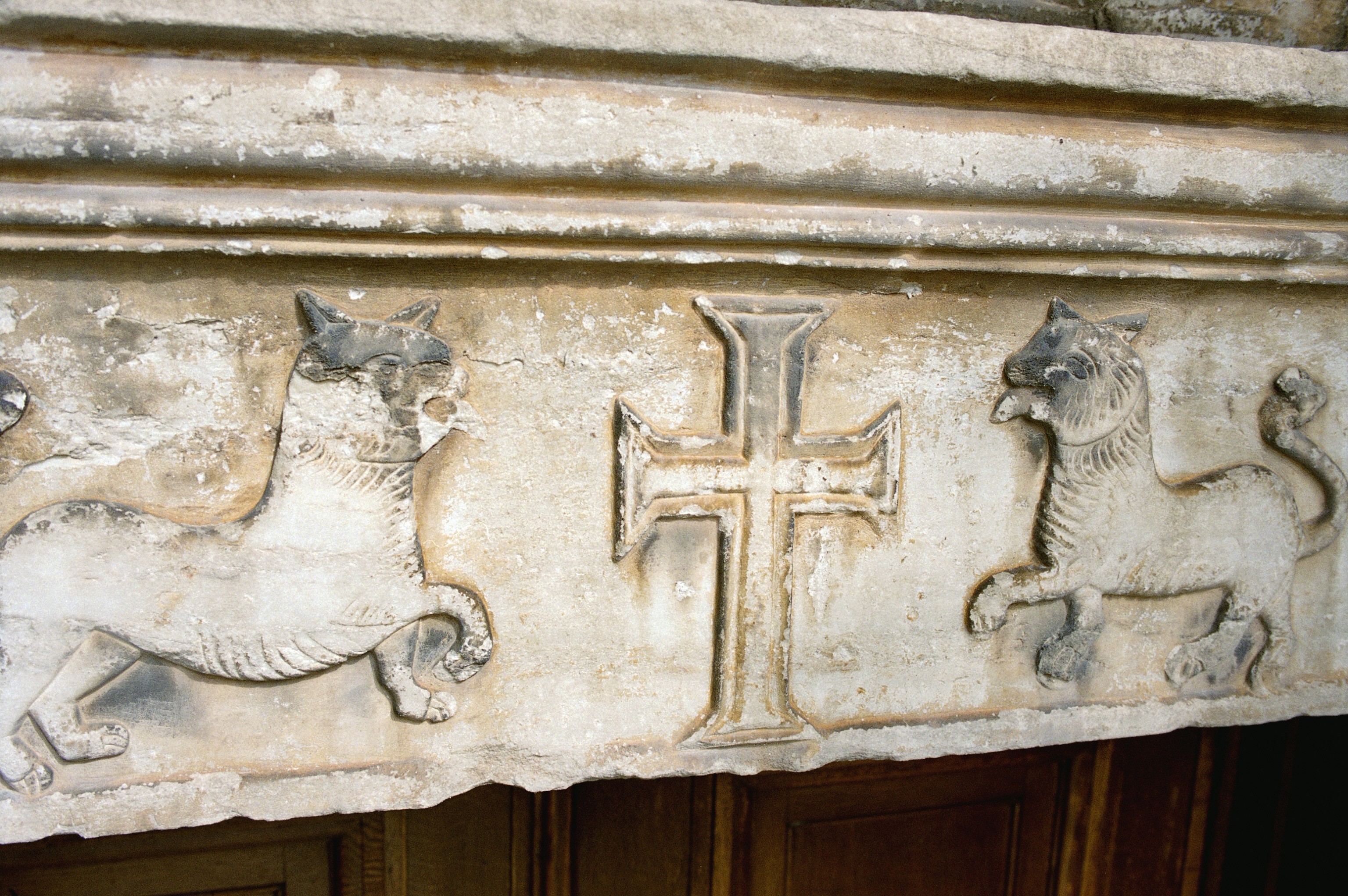 Lintel relief over W door