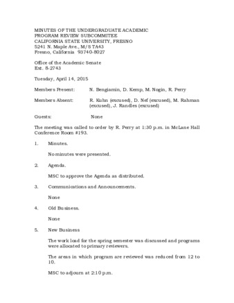 Minutes of the Undergraduate Academic Program Review Subcommittee 04/14/2015