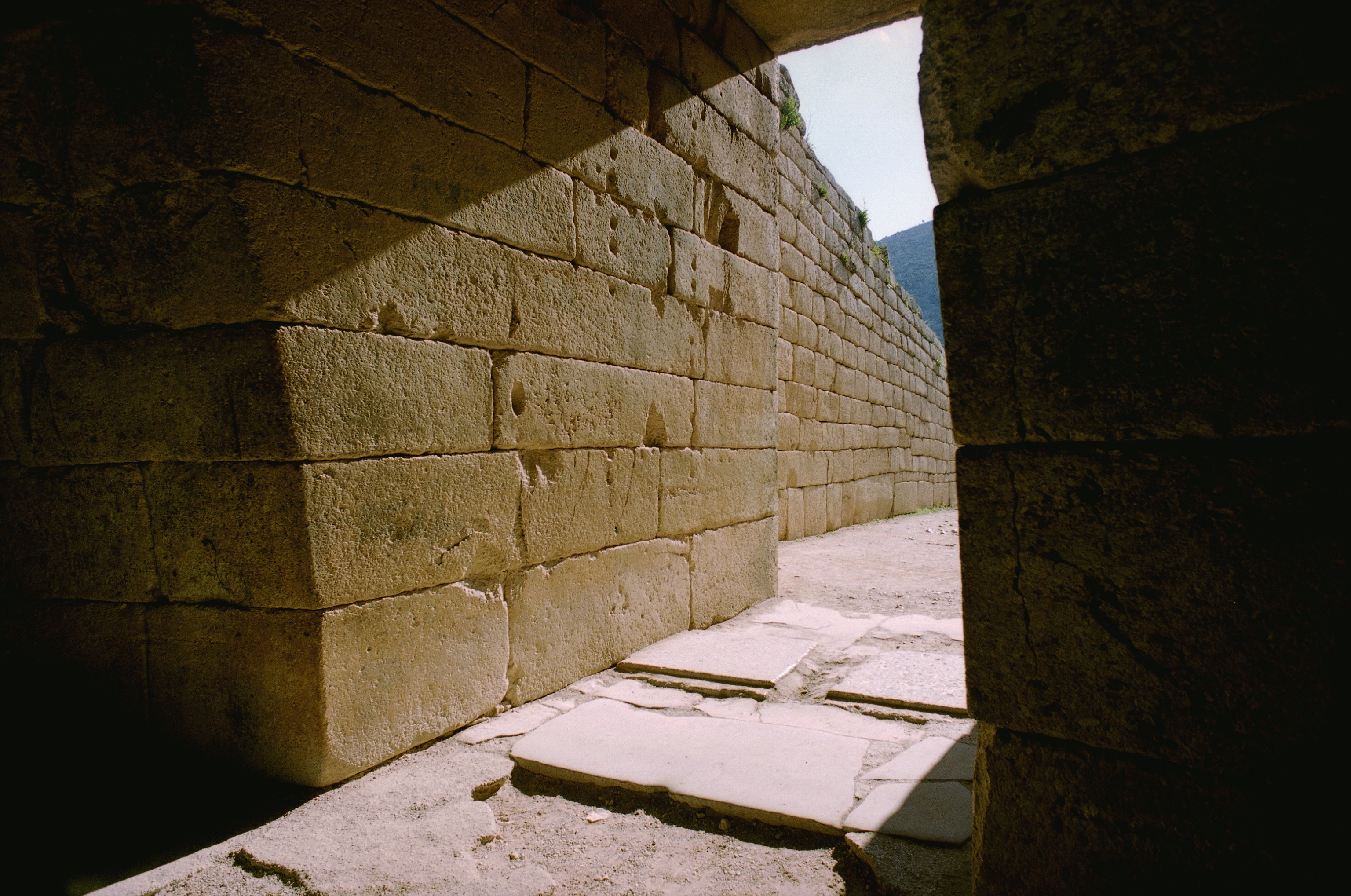 View of doorway passage from interior with limestone paving slabs