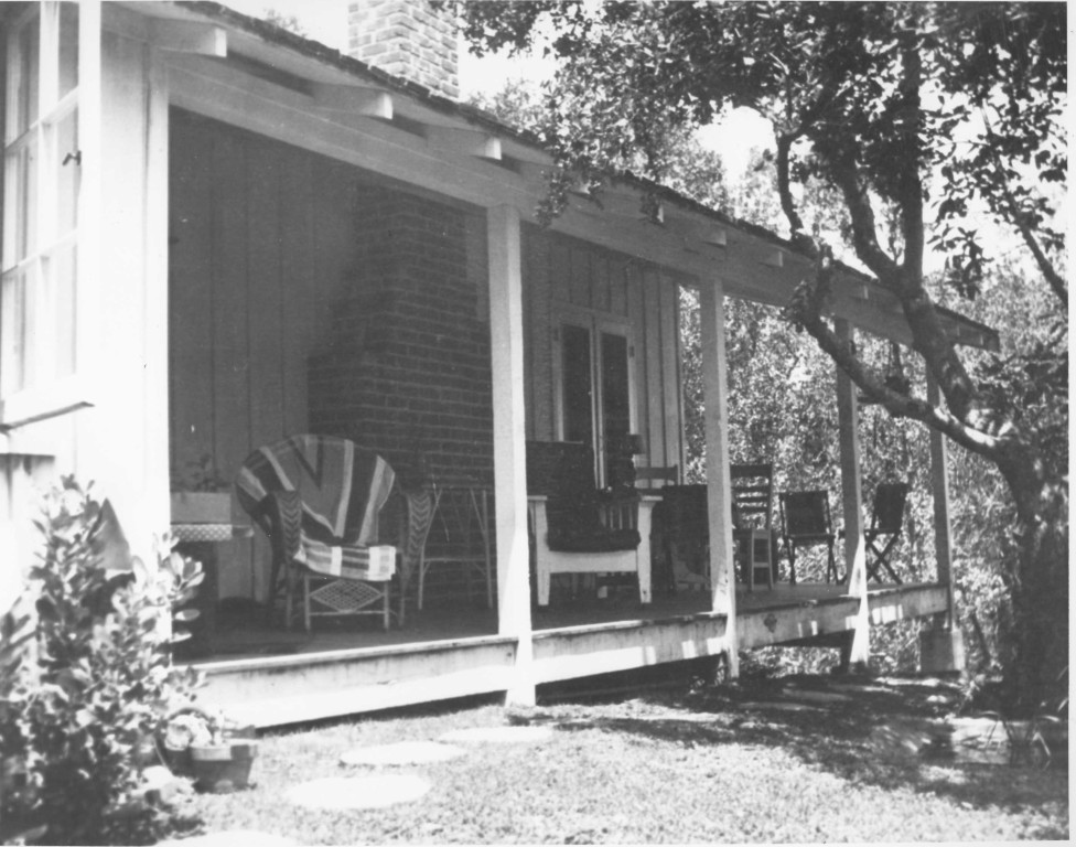 The Greenwood Lane house with a view of the porch when shaded. This house was designed by Carol Steinbeck, John and Carol lived here from 1936-1938.