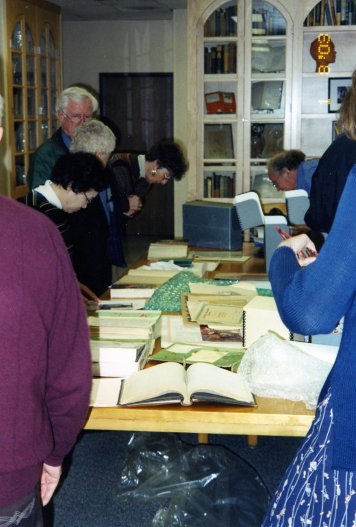 Salinans, looking at items from the archive safe on the occasion of a private archive tour hosted by the Martha Heasley Cox Center for Steinbeck Studies. Original in safe.