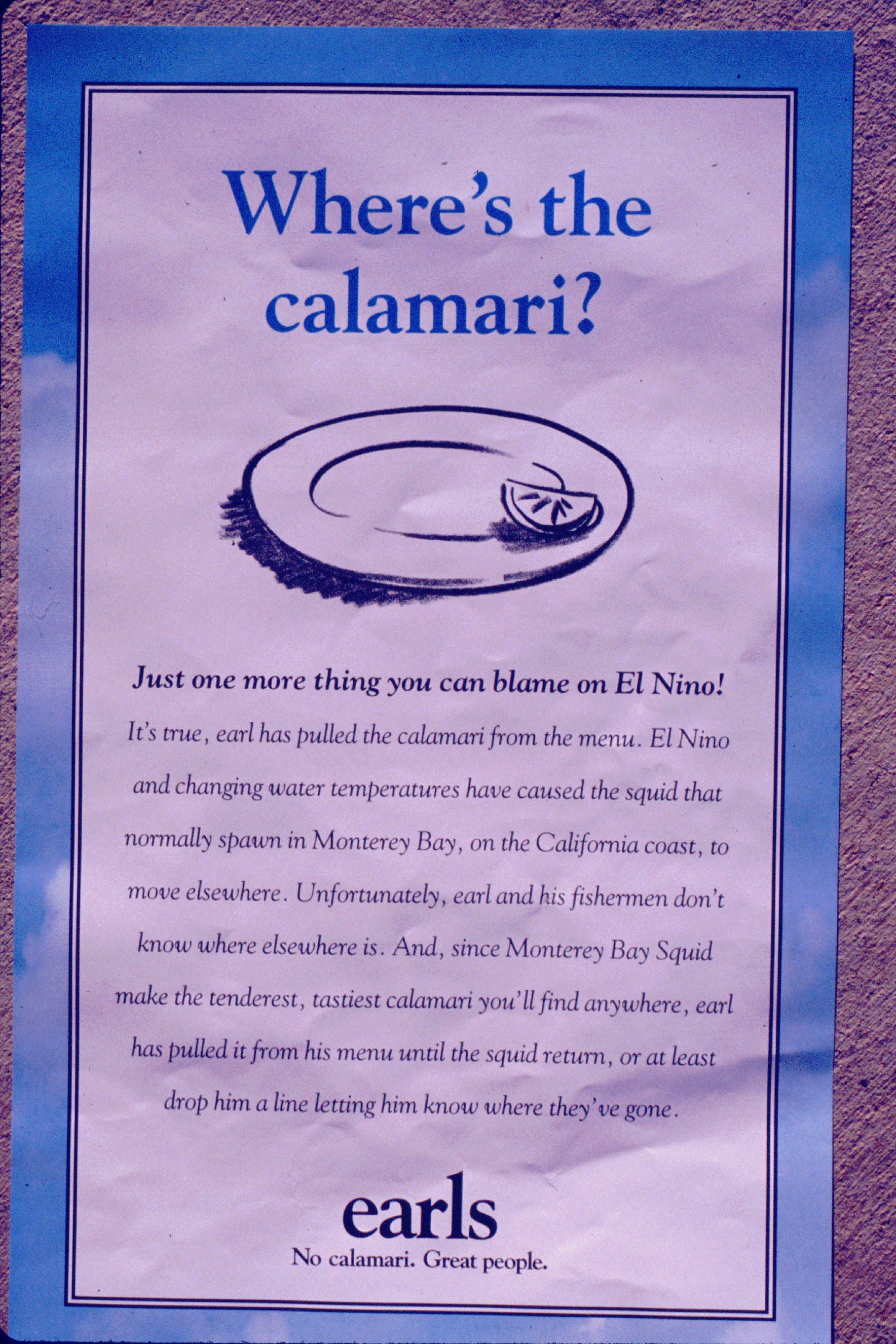 El Nino's impact on Scottsdale Restaurant (Calamari removed from menu temporarily)