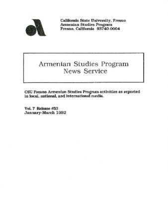 Armenian Studies Program - News Service, Release #53, Vol.7