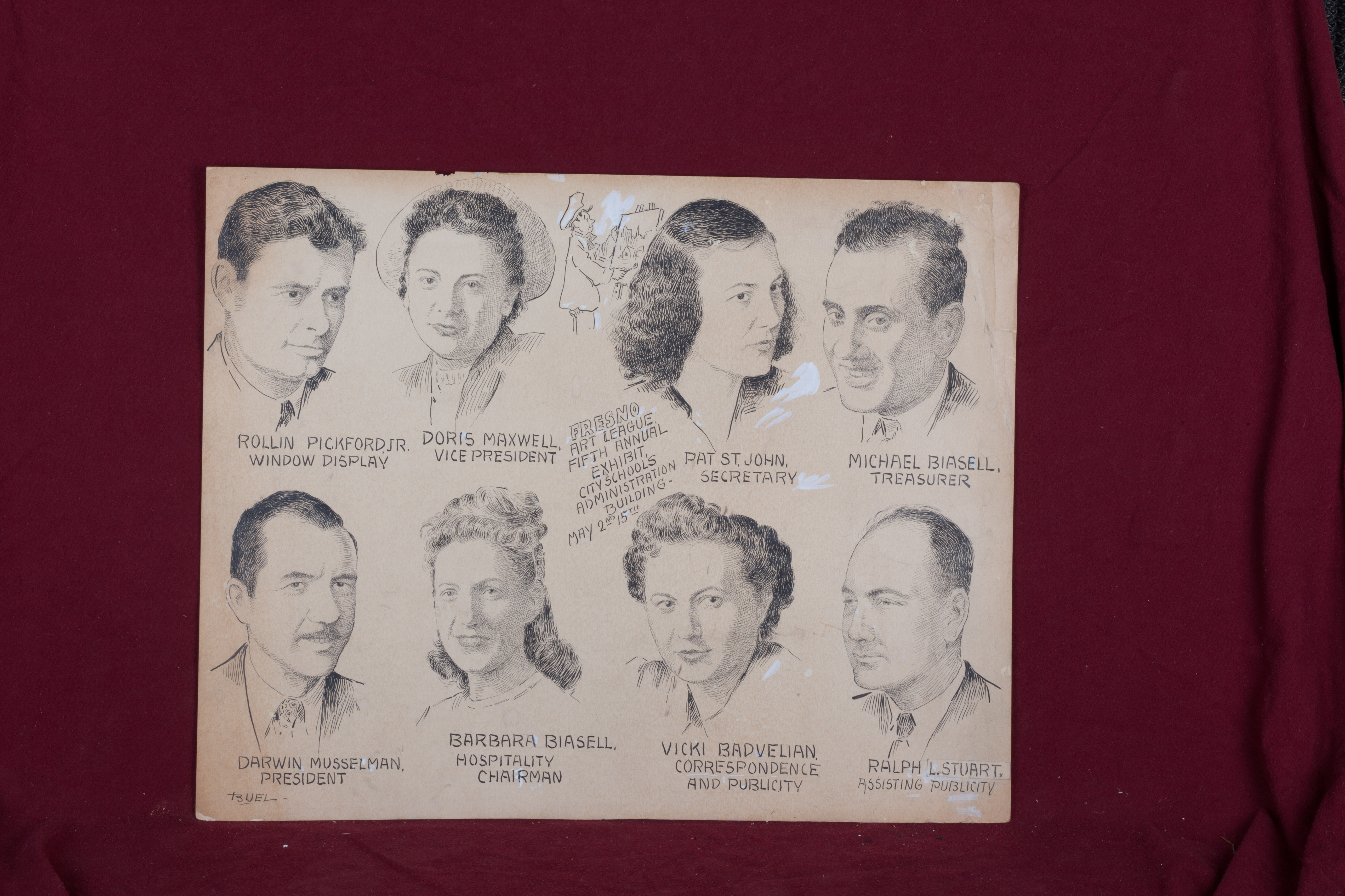 Original Poster Layout for Fresno Art League Exhibit; Includes 8 Portraits of Founding Art League Members